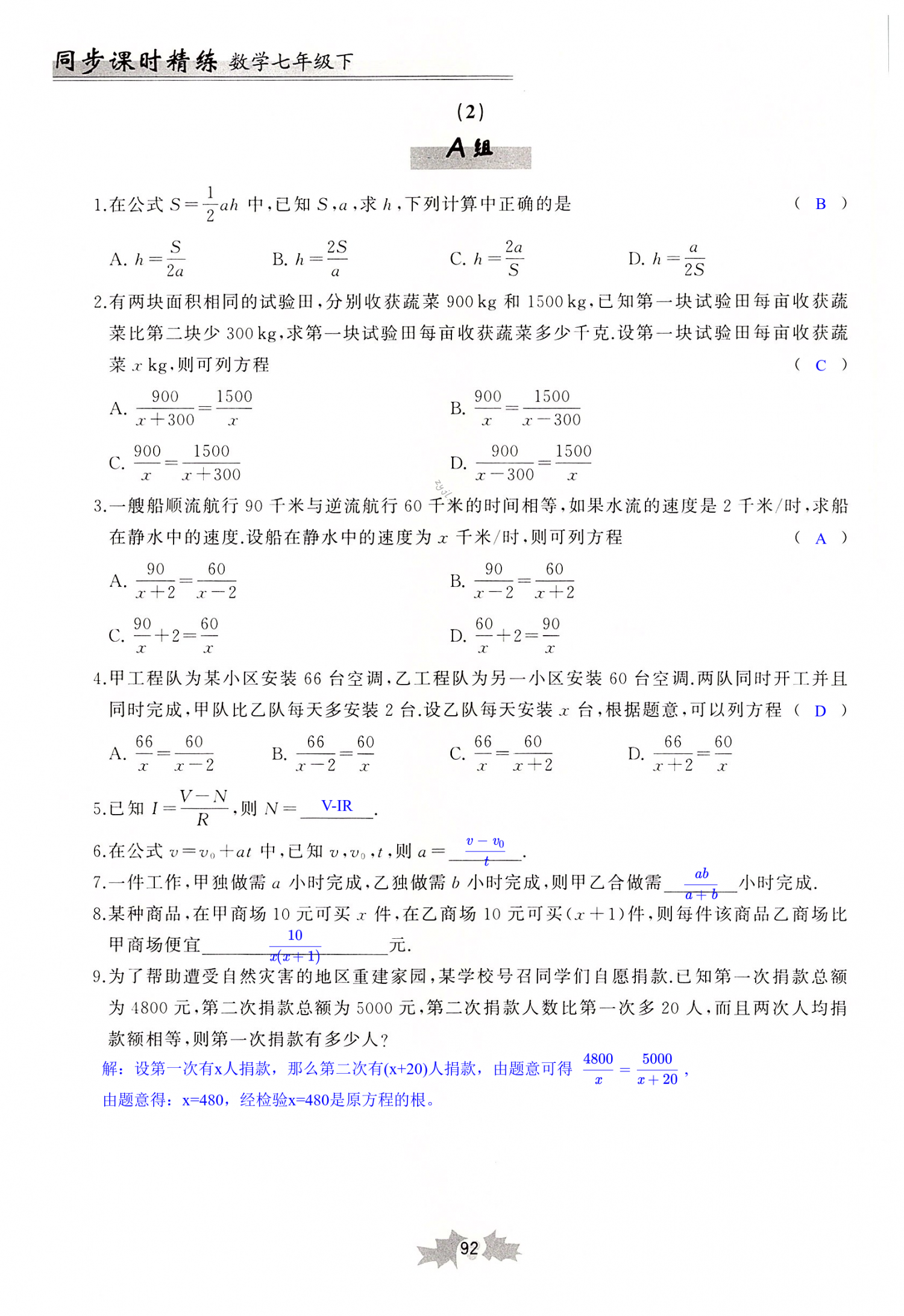 注:目前有些书本章节名称可能整理的还不是很完善,但都是按照顺序排列的,请同学们按照顺序仔细查找。练习册 2022年同步课时精练七年级数学下册浙教版 答案主要是用来给同学们做完题方便对答案用的,请勿直接抄袭。