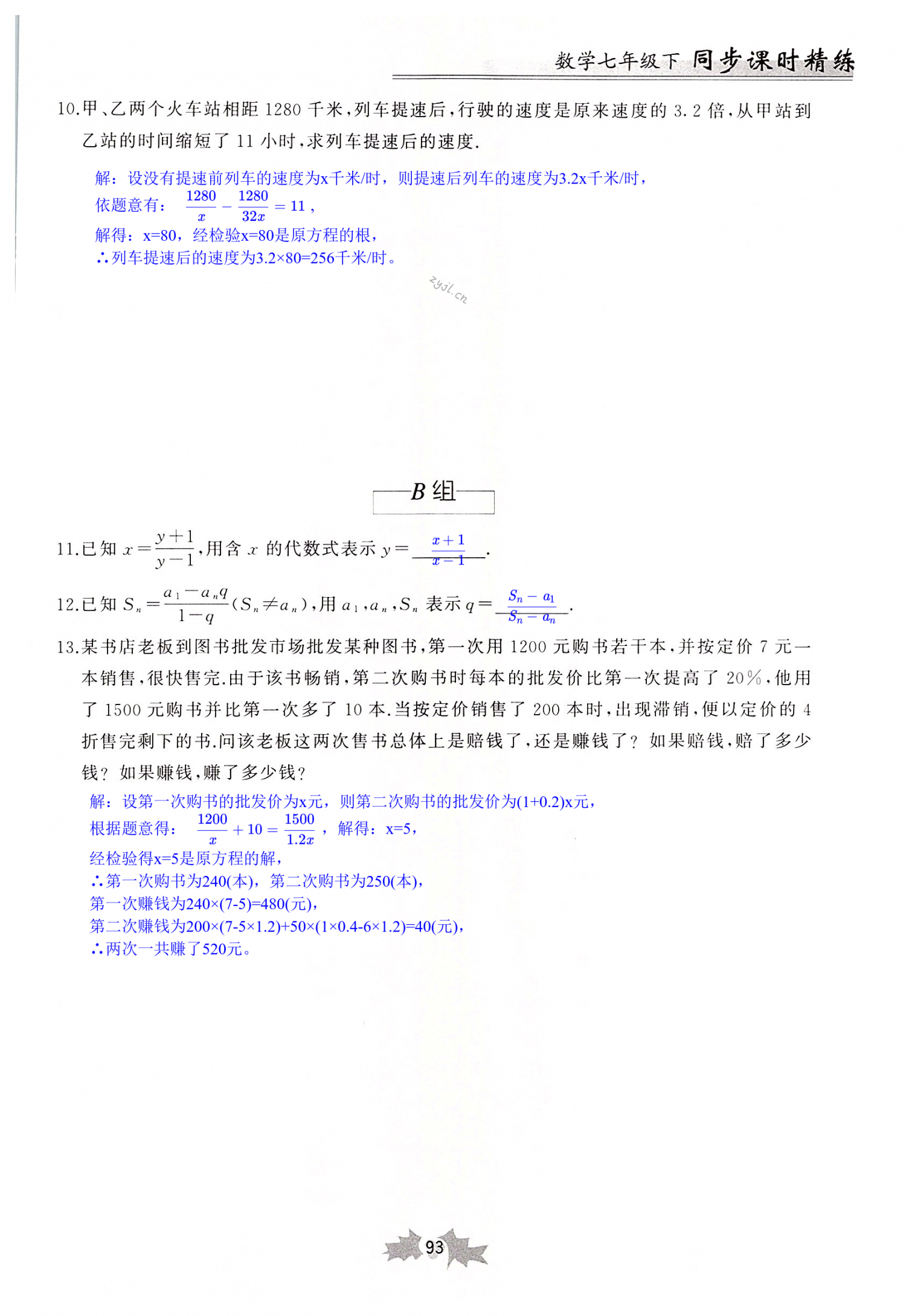 注:目前有些书本章节名称可能整理的还不是很完善,但都是按照顺序排列的,请同学们按照顺序仔细查找。练习册 2022年同步课时精练七年级数学下册浙教版 答案主要是用来给同学们做完题方便对答案用的,请勿直接抄袭。
