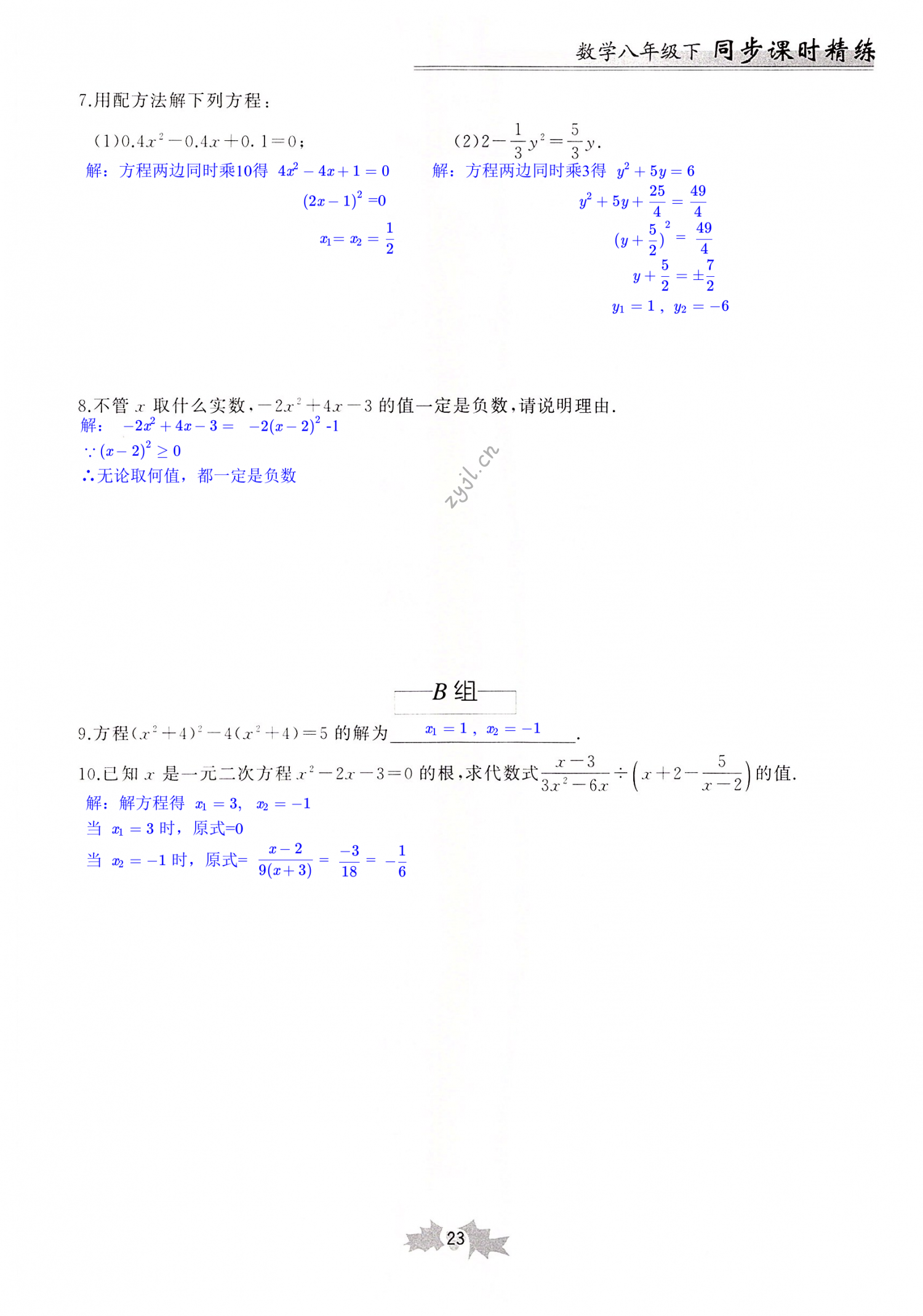 注:目前有些书本章节名称可能整理的还不是很完善,但都是按照顺序排列的,请同学们按照顺序仔细查找。练习册 2022年同步课时精练八年级数学下册浙教版 答案主要是用来给同学们做完题方便对答案用的,请勿直接抄袭。