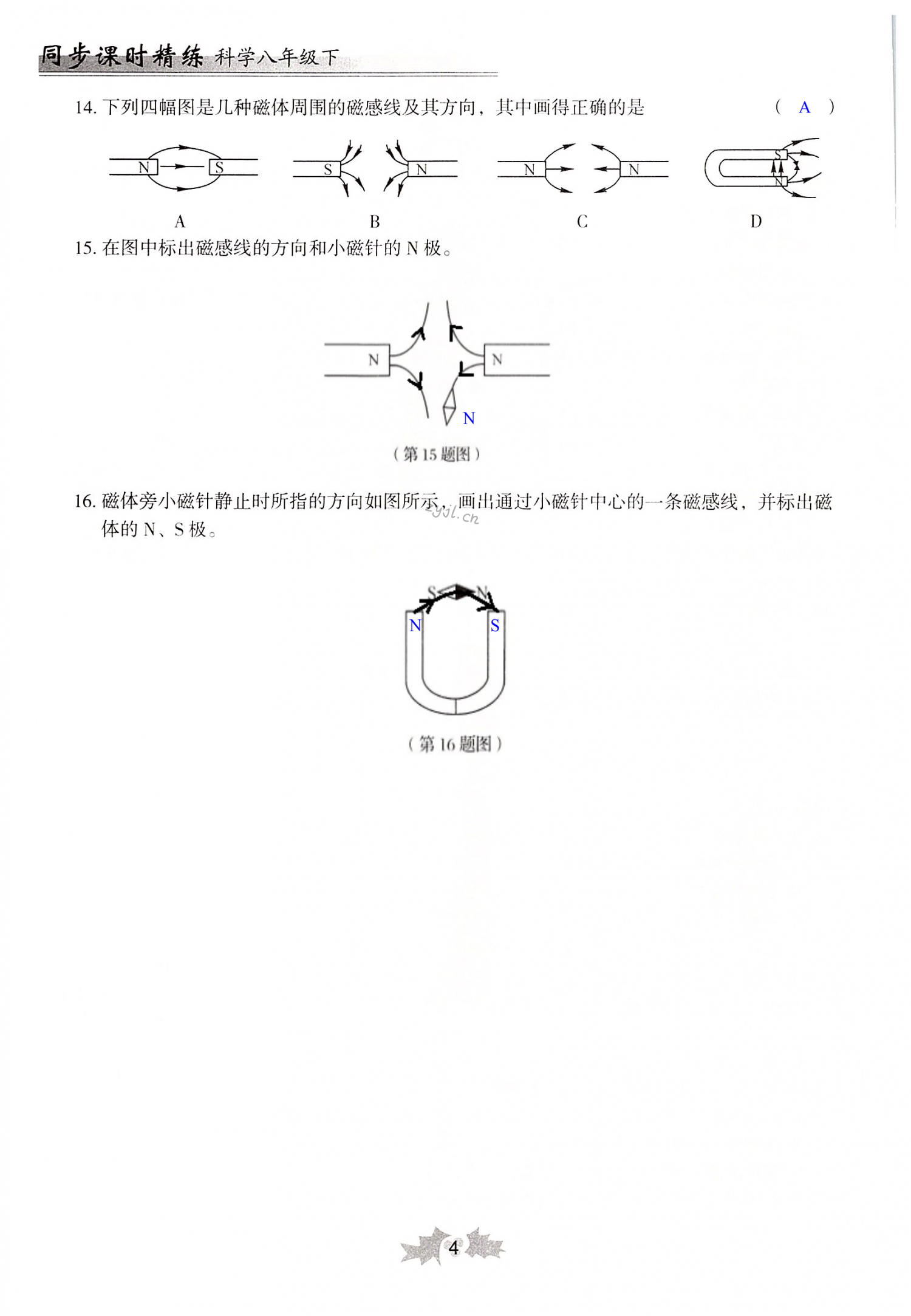 注:目前有些书本章节名称可能整理的还不是很完善,但都是按照顺序排列的,请同学们按照顺序仔细查找。练习册 2022年同步课时精练八年级科学下册浙教版 答案主要是用来给同学们做完题方便对答案用的,请勿直接抄袭。