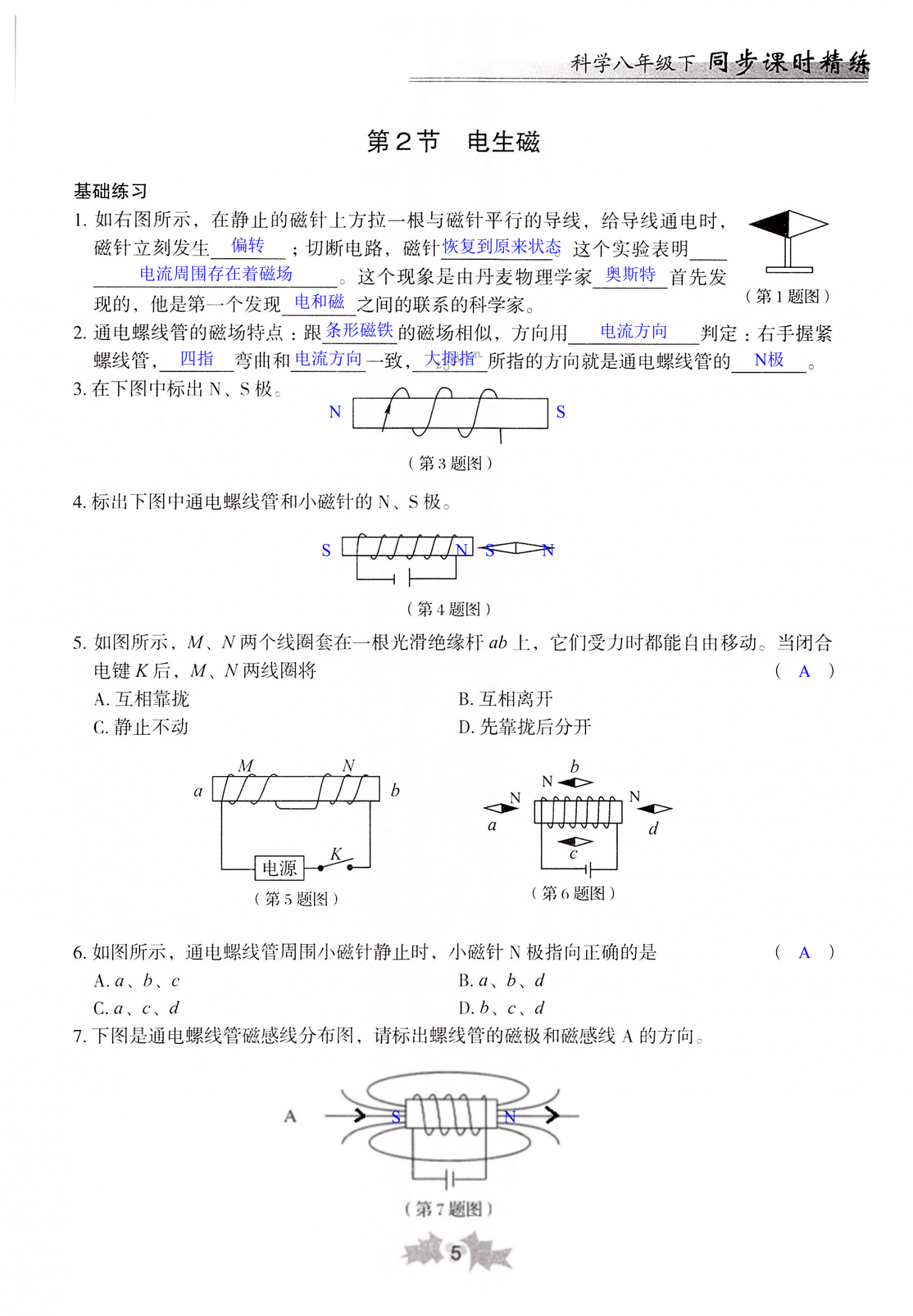 注:目前有些书本章节名称可能整理的还不是很完善,但都是按照顺序排列的,请同学们按照顺序仔细查找。练习册 2022年同步课时精练八年级科学下册浙教版 答案主要是用来给同学们做完题方便对答案用的,请勿直接抄袭。