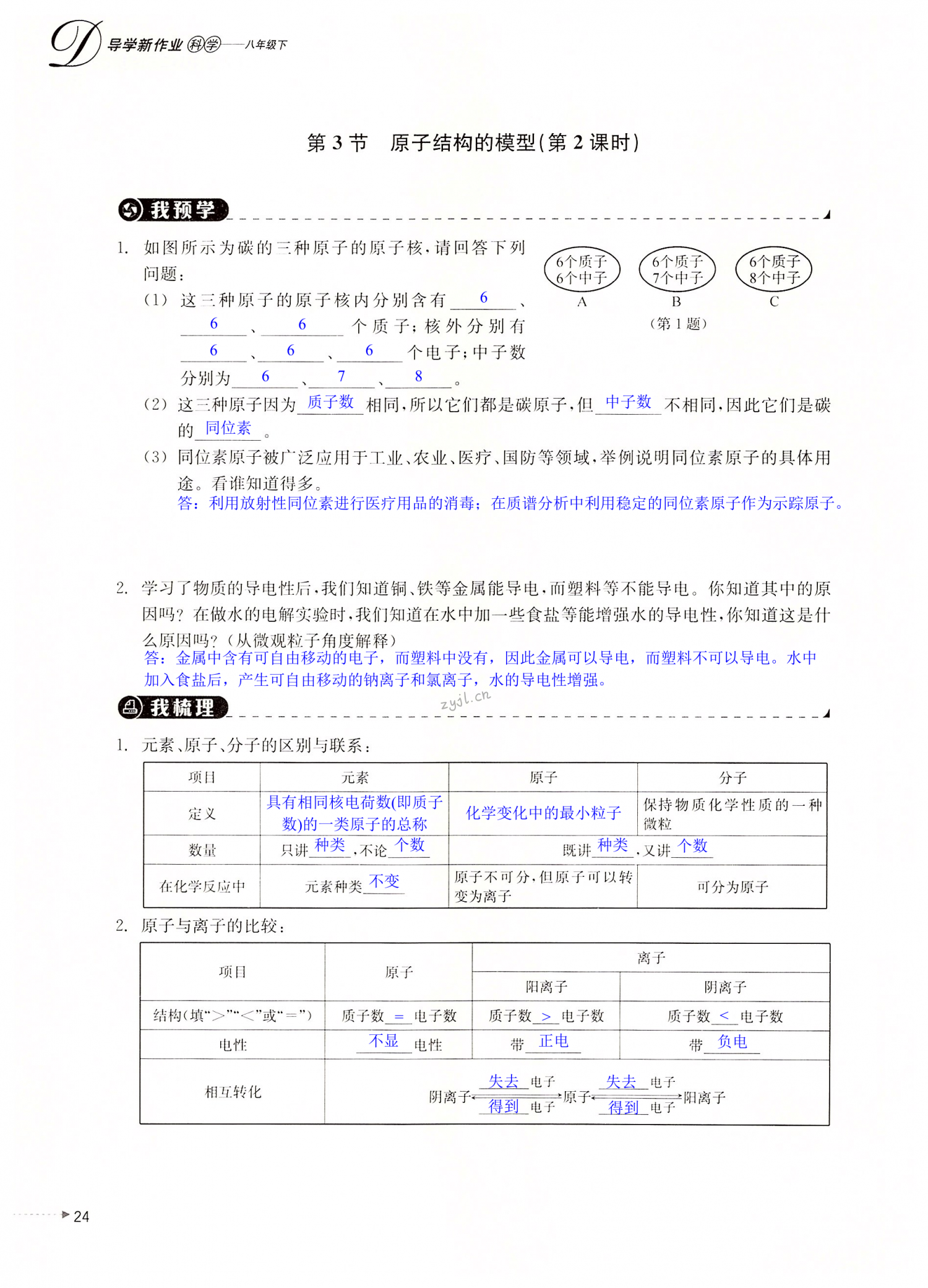注:目前有些书本章节名称可能整理的还不是很完善,但都是按照顺序排列的,请同学们按照顺序仔细查找。练习册 2022年导学新作业八年级科学下册浙教版 答案主要是用来给同学们做完题方便对答案用的,请勿直接抄袭。