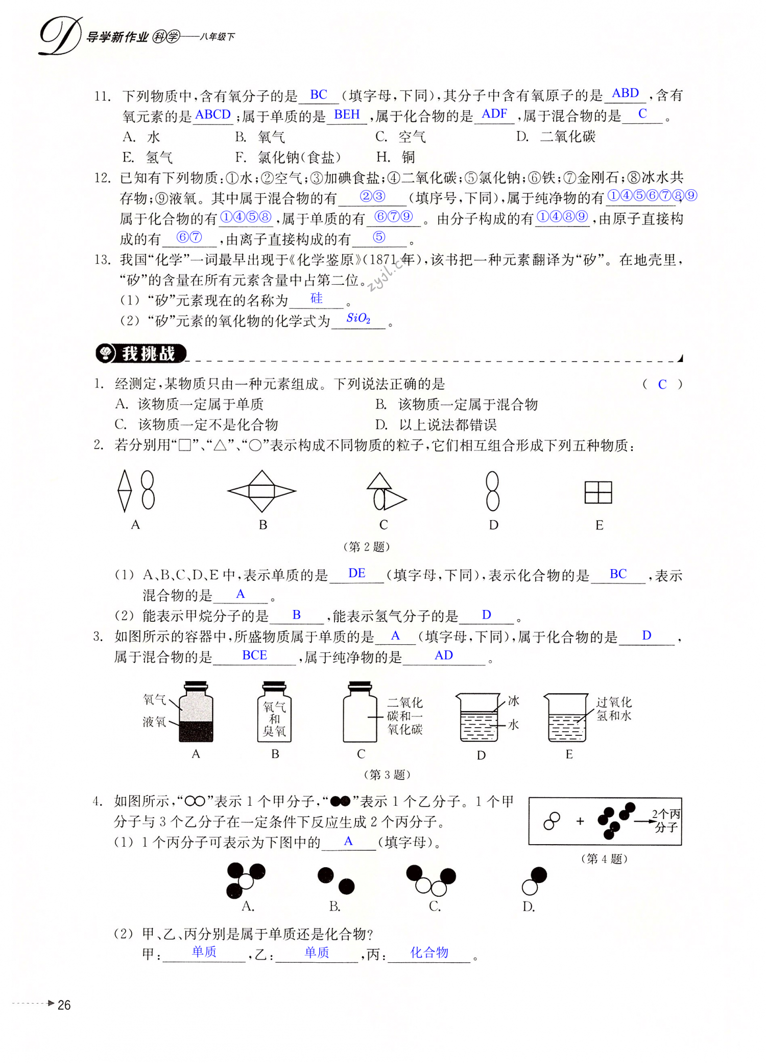 注:目前有些书本章节名称可能整理的还不是很完善,但都是按照顺序排列的,请同学们按照顺序仔细查找。练习册 2022年导学新作业八年级科学下册浙教版 答案主要是用来给同学们做完题方便对答案用的,请勿直接抄袭。