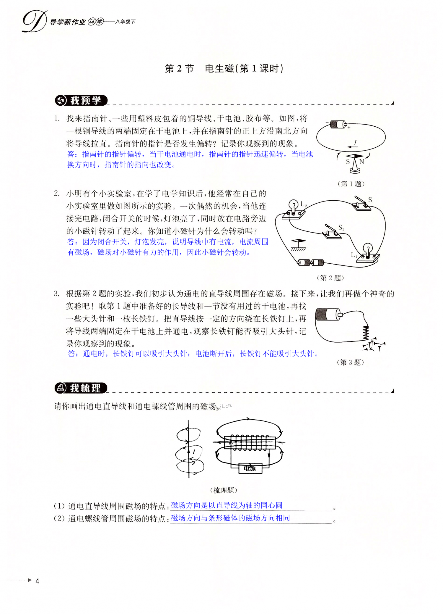 注:目前有些书本章节名称可能整理的还不是很完善,但都是按照顺序排列的,请同学们按照顺序仔细查找。练习册 2022年导学新作业八年级科学下册浙教版 答案主要是用来给同学们做完题方便对答案用的,请勿直接抄袭。