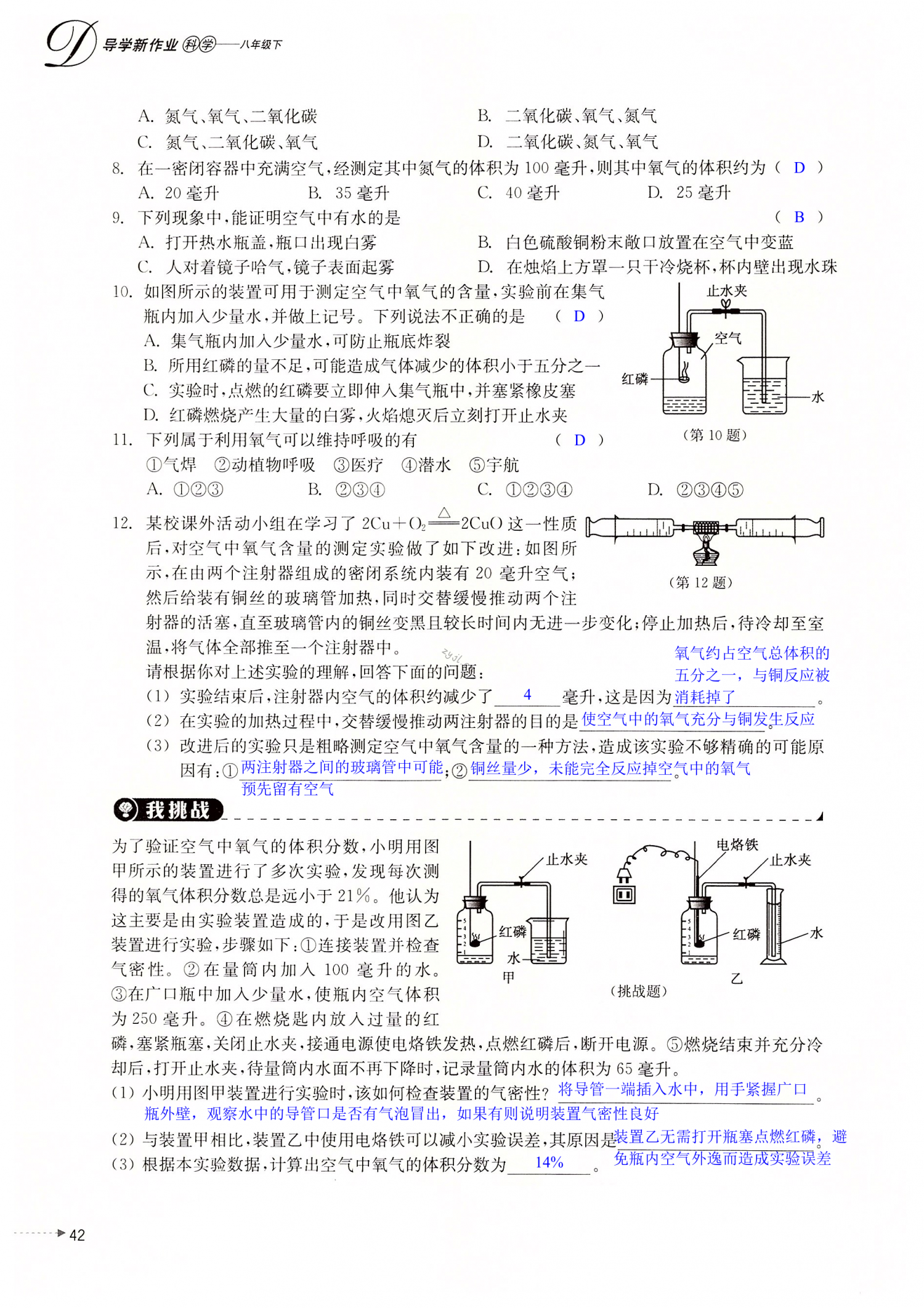 注:目前有些书本章节名称可能整理的还不是很完善,但都是按照顺序排列的,请同学们按照顺序仔细查找。练习册 2022年导学新作业八年级科学下册浙教版 答案主要是用来给同学们做完题方便对答案用的,请勿直接抄袭。