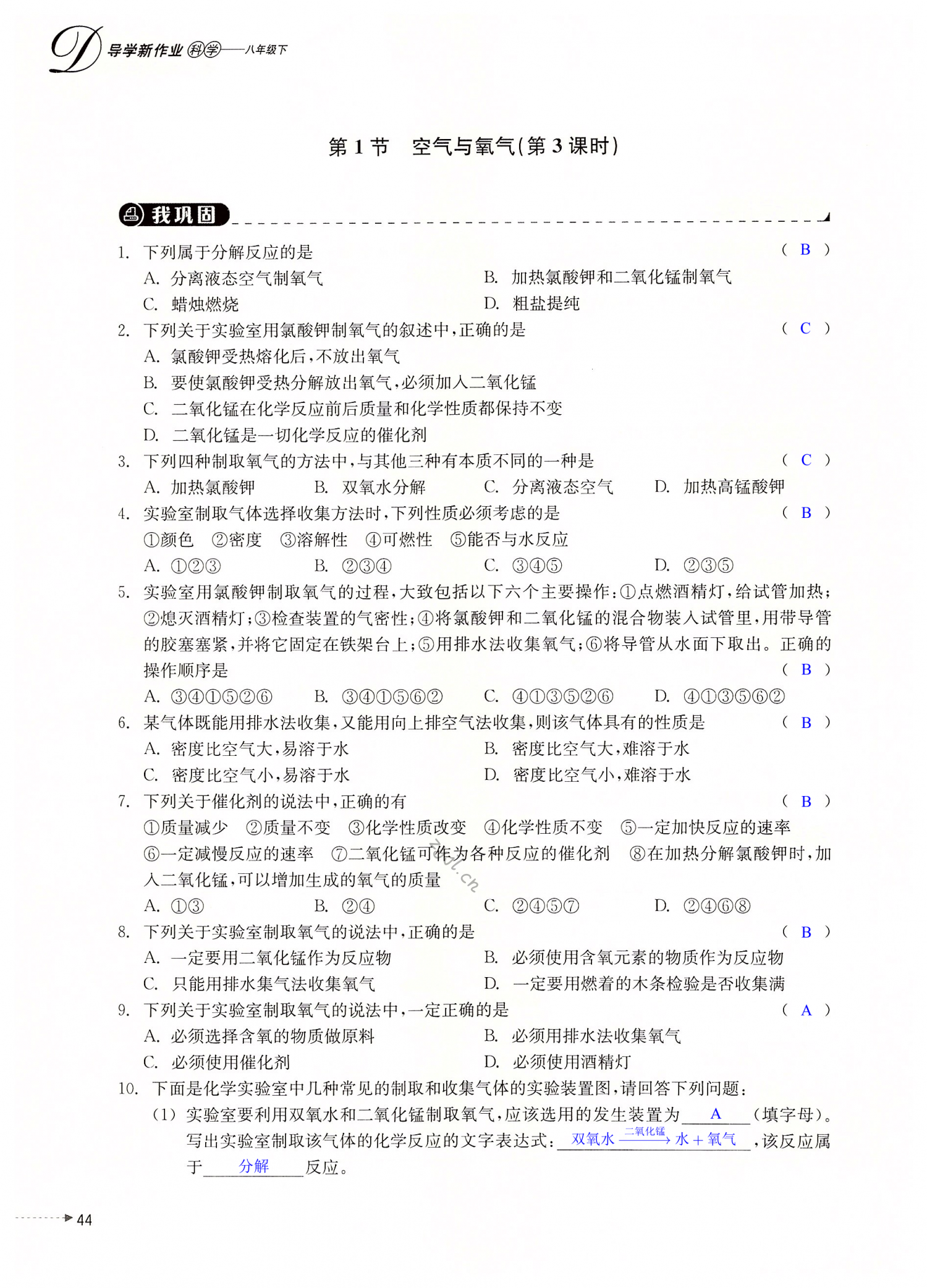 注:目前有些书本章节名称可能整理的还不是很完善,但都是按照顺序排列的,请同学们按照顺序仔细查找。练习册 2022年导学新作业八年级科学下册浙教版 答案主要是用来给同学们做完题方便对答案用的,请勿直接抄袭。