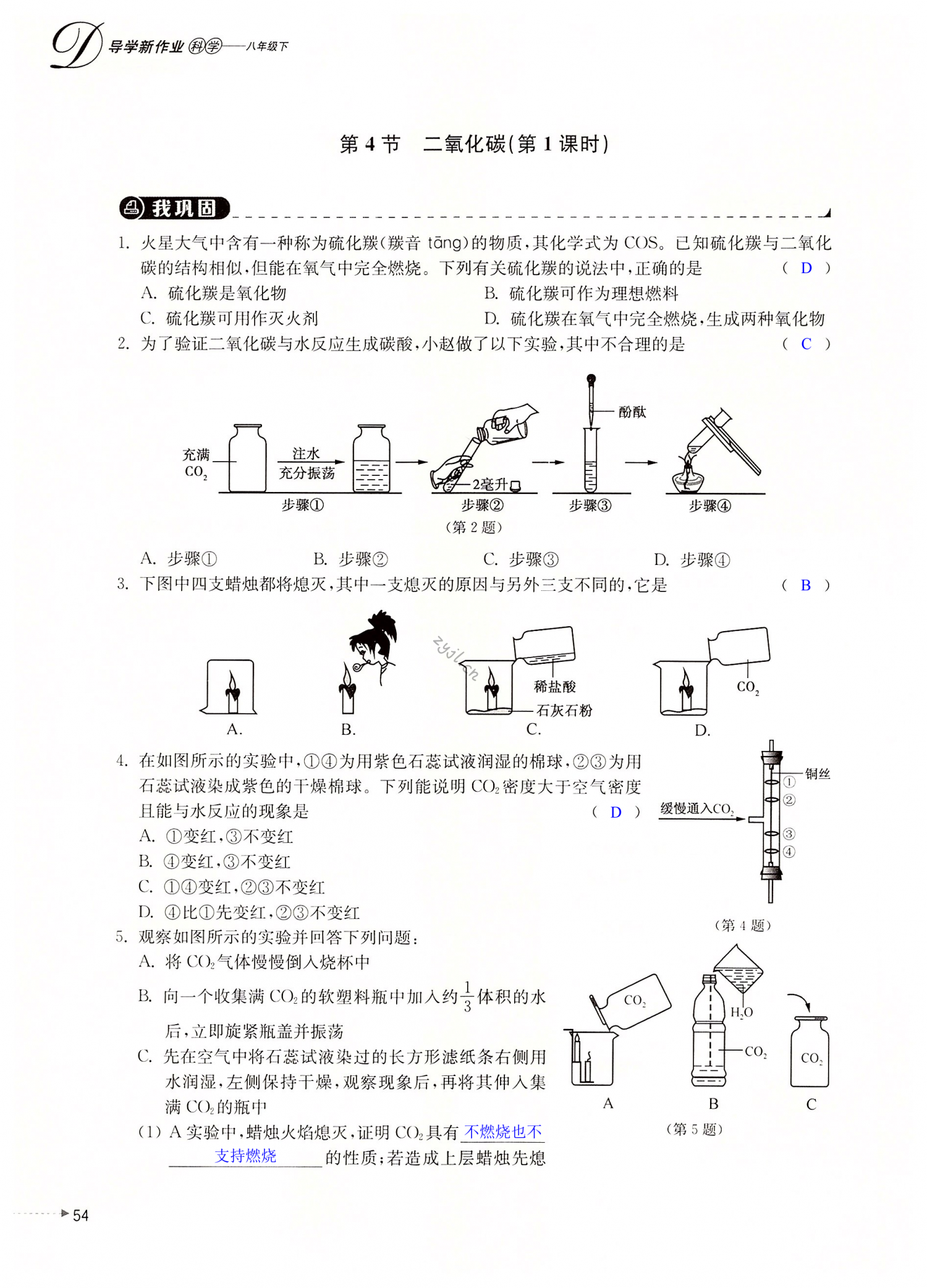 2022年导学新作业八年级科学下册浙教版
