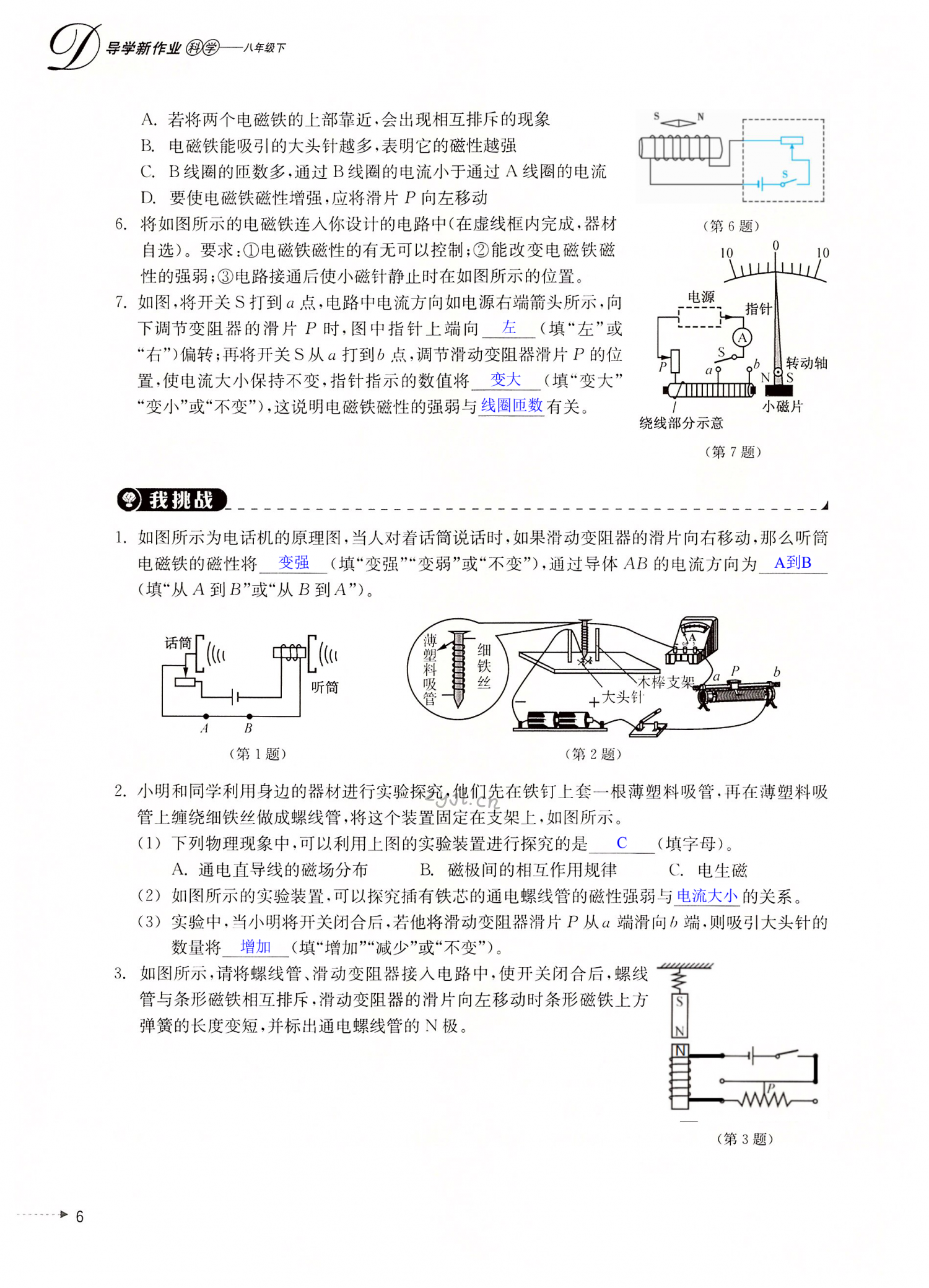 注:目前有些书本章节名称可能整理的还不是很完善,但都是按照顺序排列的,请同学们按照顺序仔细查找。练习册 2022年导学新作业八年级科学下册浙教版 答案主要是用来给同学们做完题方便对答案用的,请勿直接抄袭。