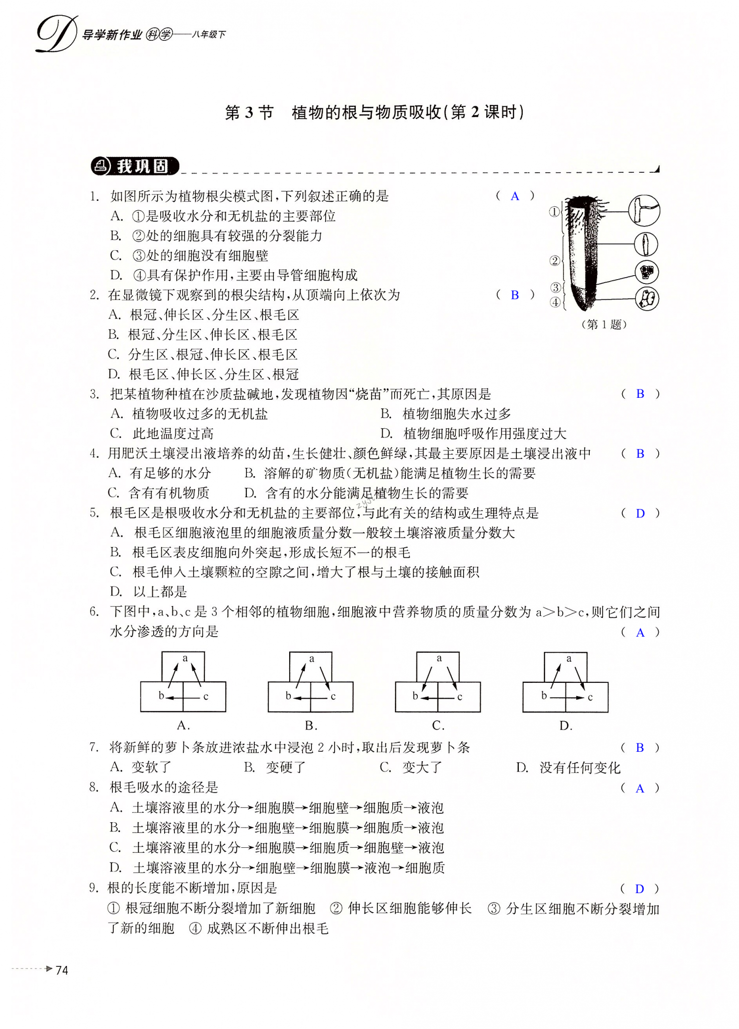 注:目前有些书本章节名称可能整理的还不是很完善,但都是按照顺序排列的,请同学们按照顺序仔细查找。练习册 2022年导学新作业八年级科学下册浙教版 答案主要是用来给同学们做完题方便对答案用的,请勿直接抄袭。