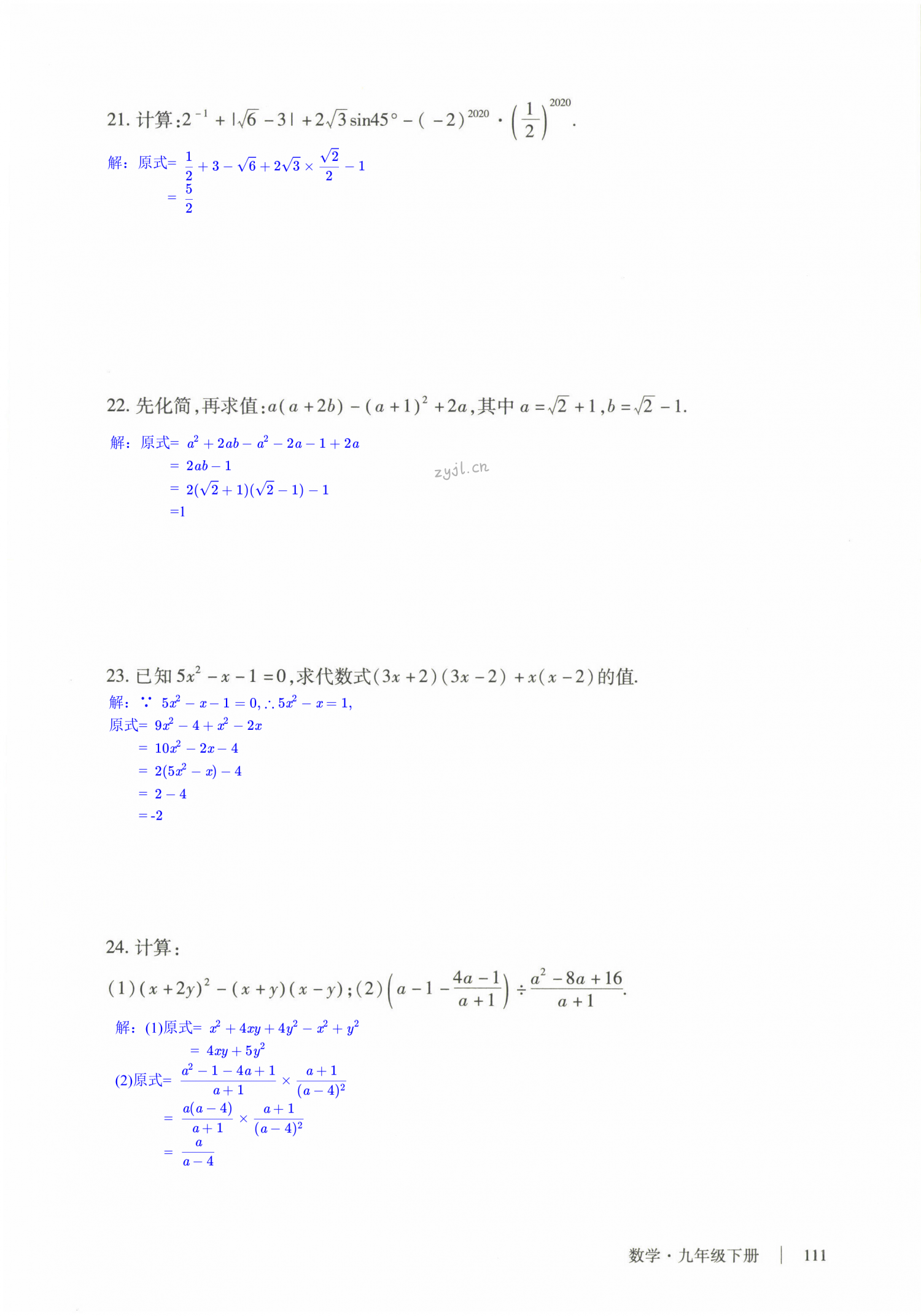 注:目前有些书本章节名称可能整理的还不是很完善,但都是按照顺序排列的,请同学们按照顺序仔细查找。练习册 2022年自主学习指导课程与测试九年级数学下册人教版 答案主要是用来给同学们做完题方便对答案用的,请勿直接抄袭。