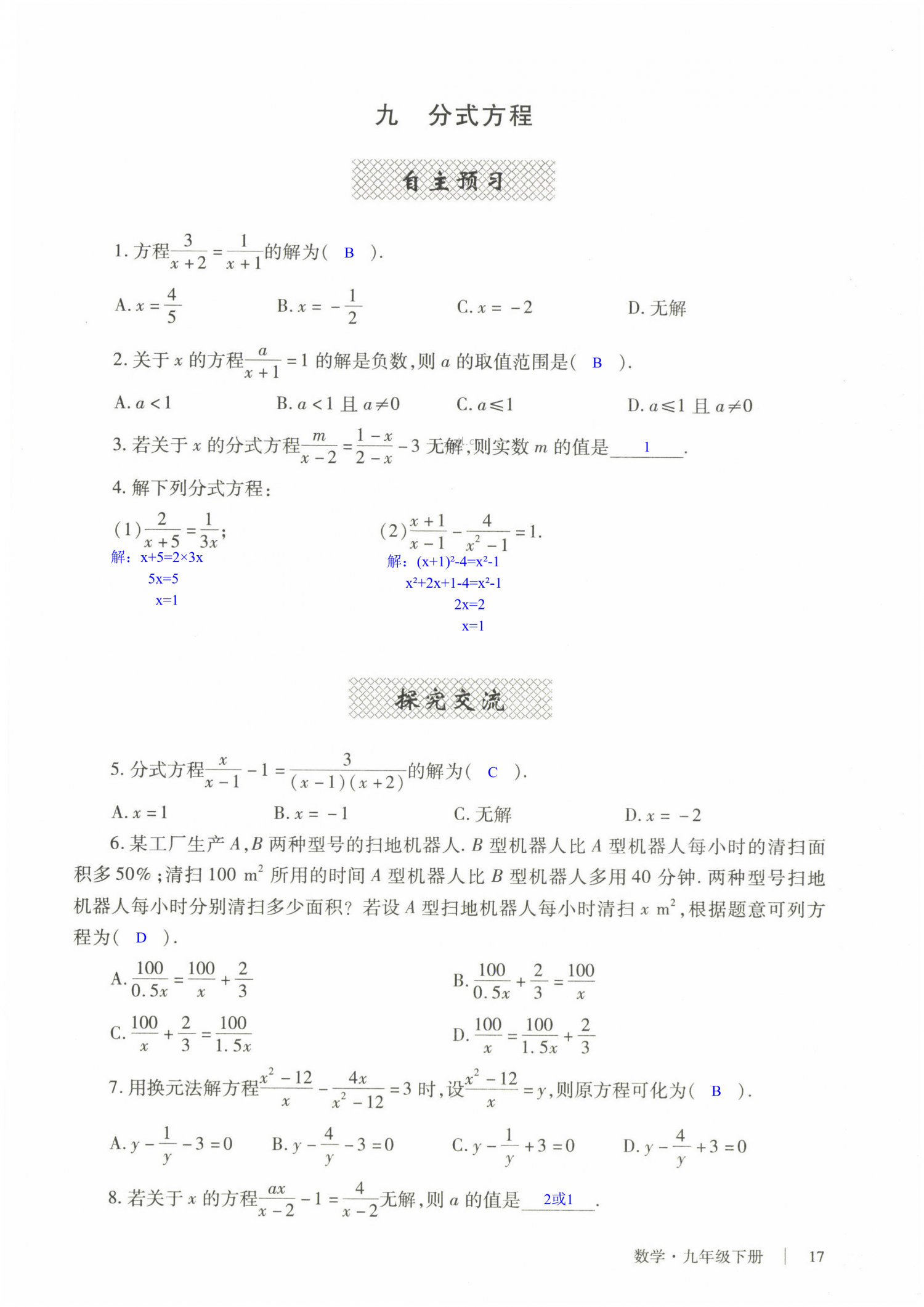 2022年自主学习指导课程与测试九年级数学下册人教版
