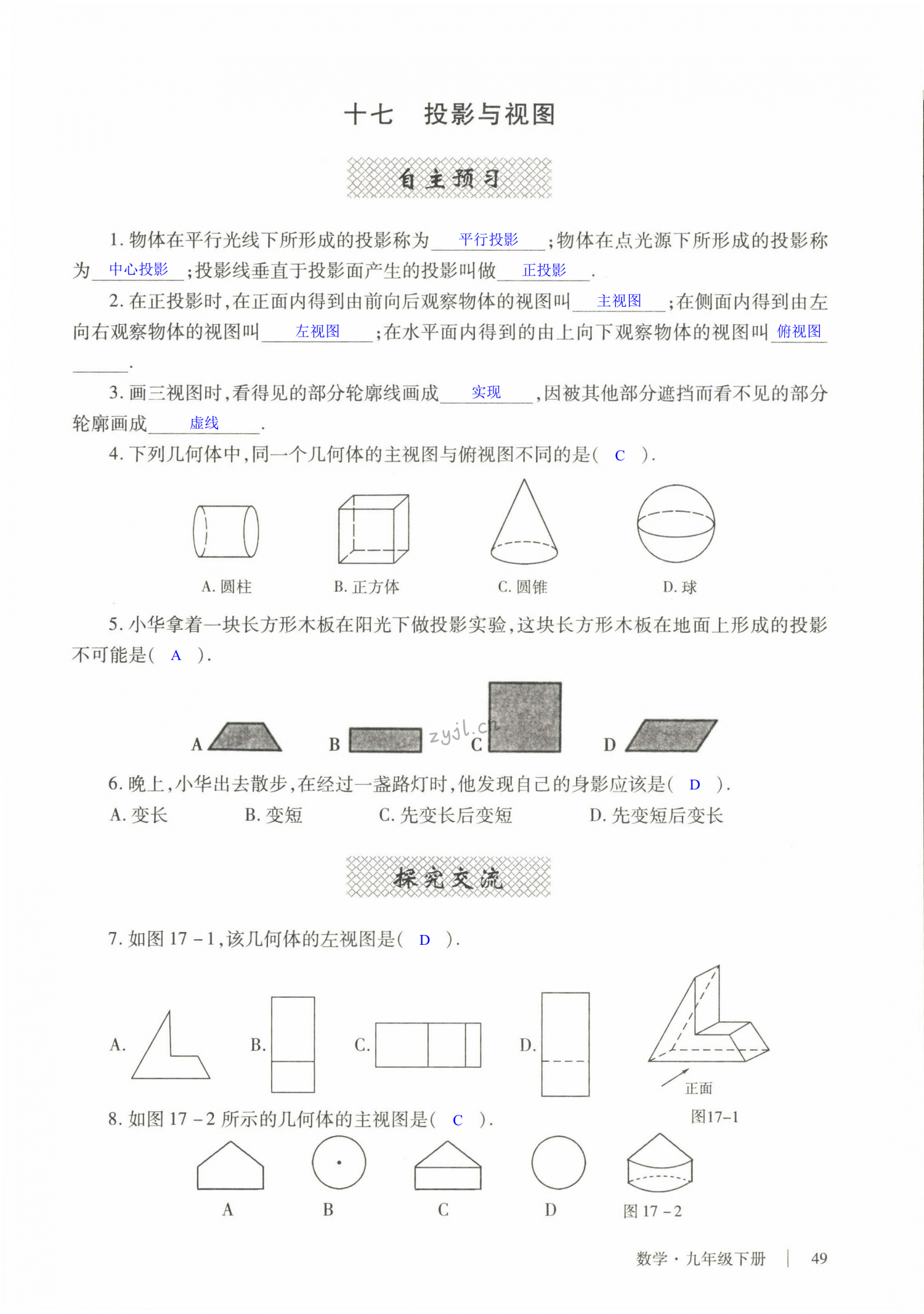 注:目前有些书本章节名称可能整理的还不是很完善,但都是按照顺序排列的,请同学们按照顺序仔细查找。练习册 2022年自主学习指导课程与测试九年级数学下册人教版 答案主要是用来给同学们做完题方便对答案用的,请勿直接抄袭。