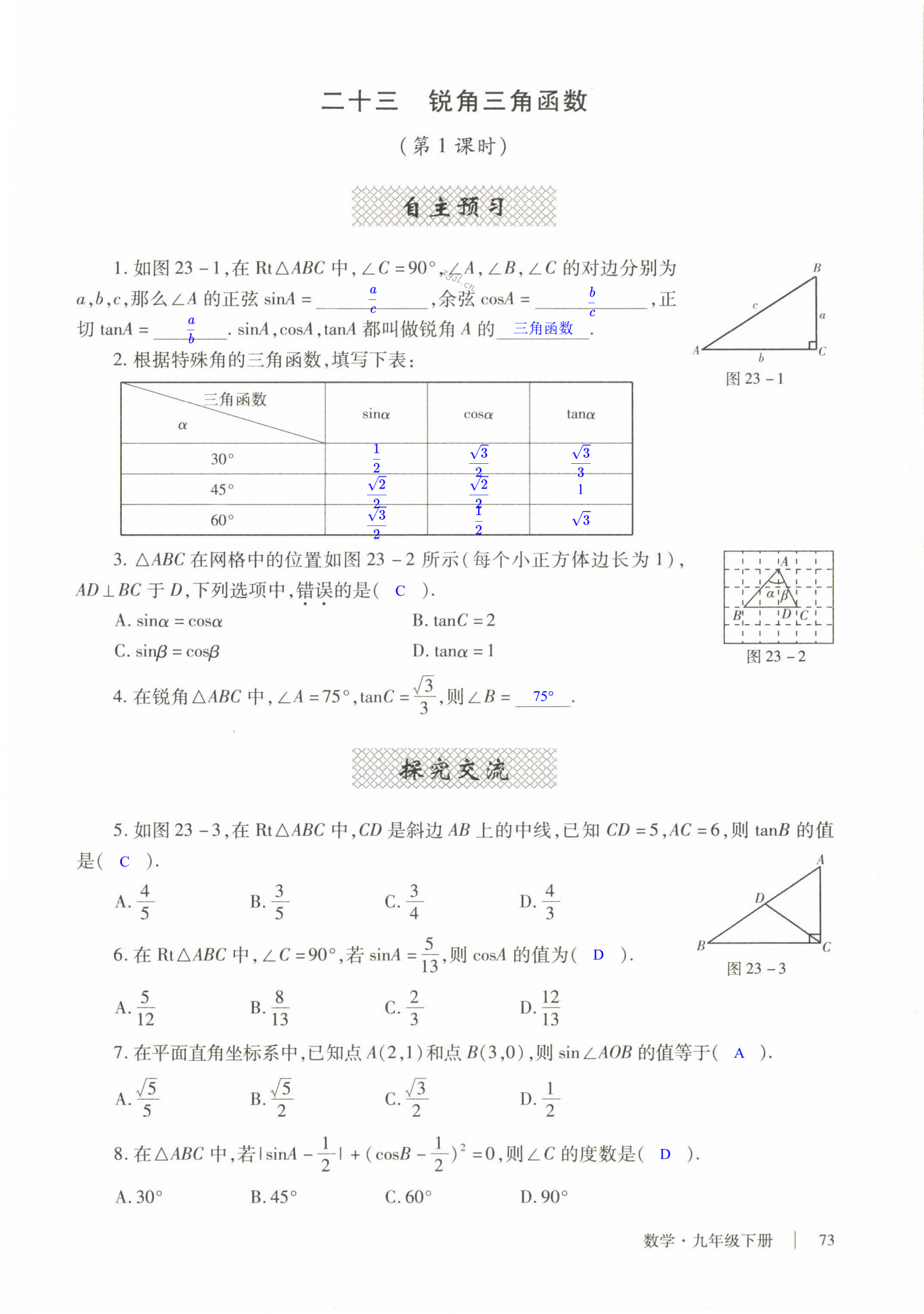 注:目前有些书本章节名称可能整理的还不是很完善,但都是按照顺序排列的,请同学们按照顺序仔细查找。练习册 2022年自主学习指导课程与测试九年级数学下册人教版 答案主要是用来给同学们做完题方便对答案用的,请勿直接抄袭。