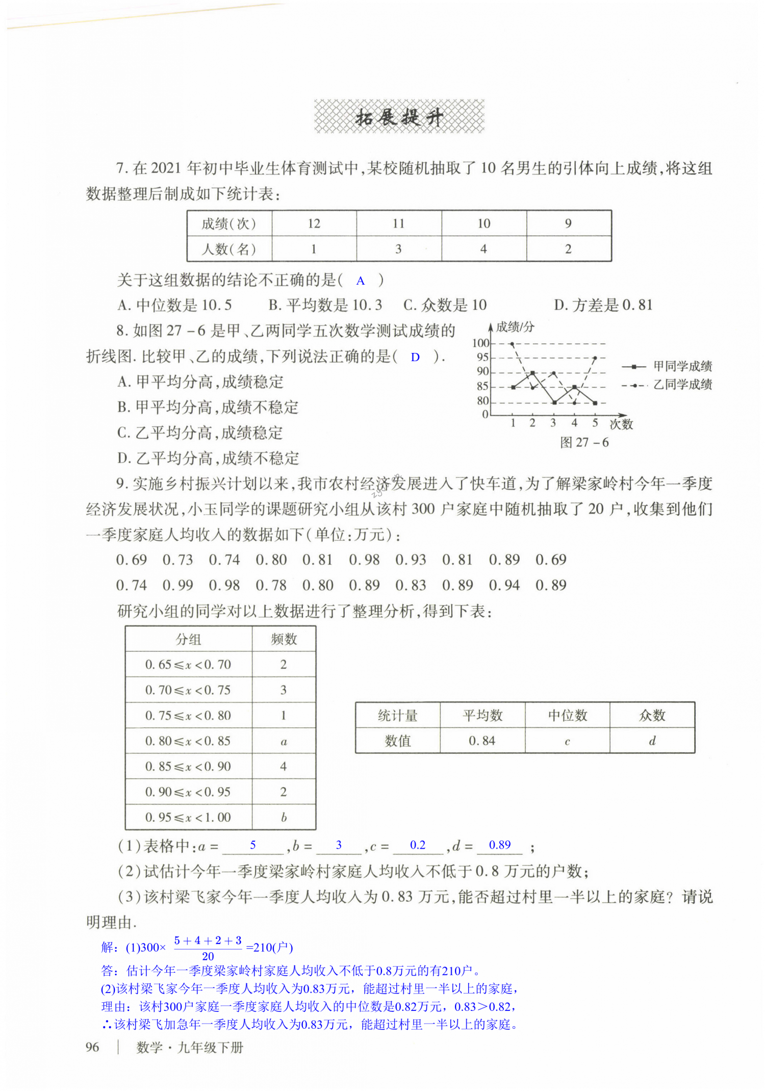 2022年自主学习指导课程与测试九年级数学下册人教版
