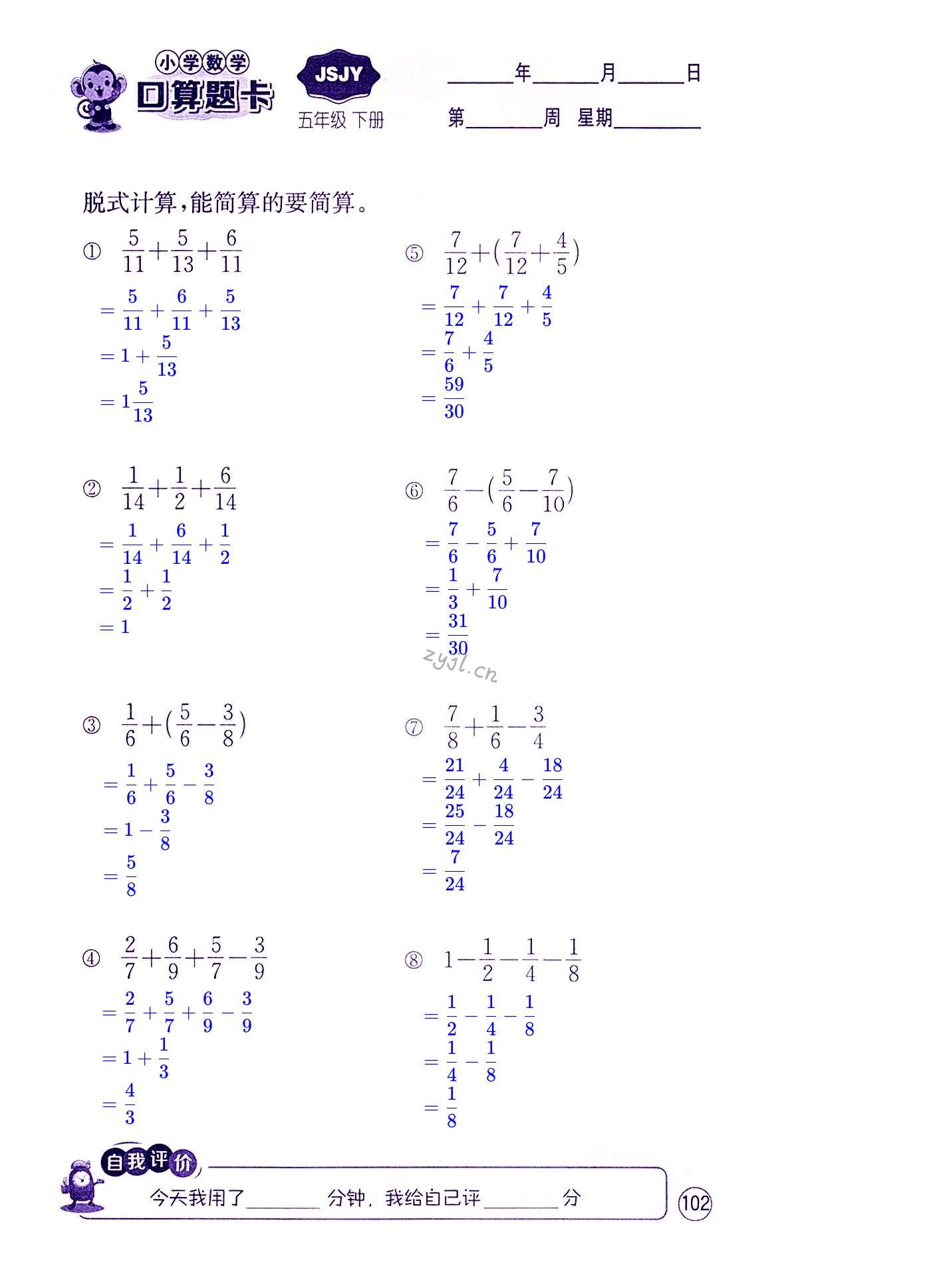 2022年小学数学口算题卡五年级下册苏教版江苏人民出版社