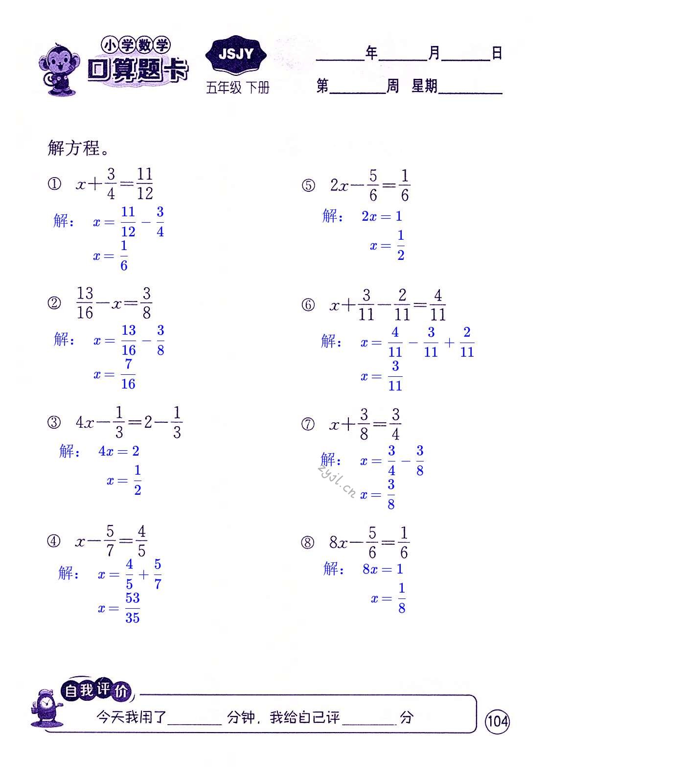 注:目前有些书本章节名称可能整理的还不是很完善,但都是按照顺序排列的,请同学们按照顺序仔细查找。练习册 2022年小学数学口算题卡五年级下册苏教版江苏人民出版社 答案主要是用来给同学们做完题方便对答案用的,请勿直接抄袭。