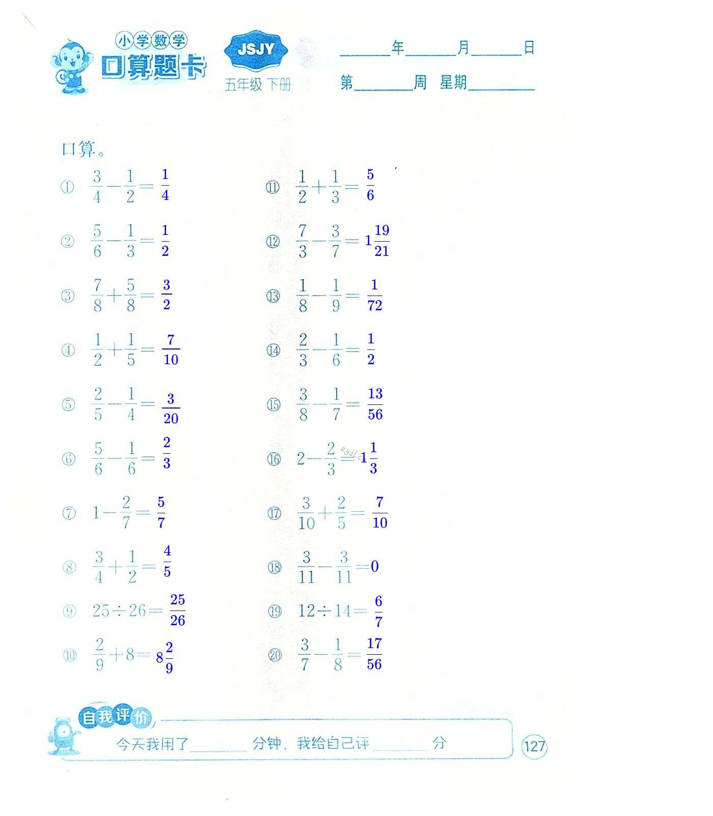 2022年小学数学口算题卡五年级下册苏教版江苏人民出版社