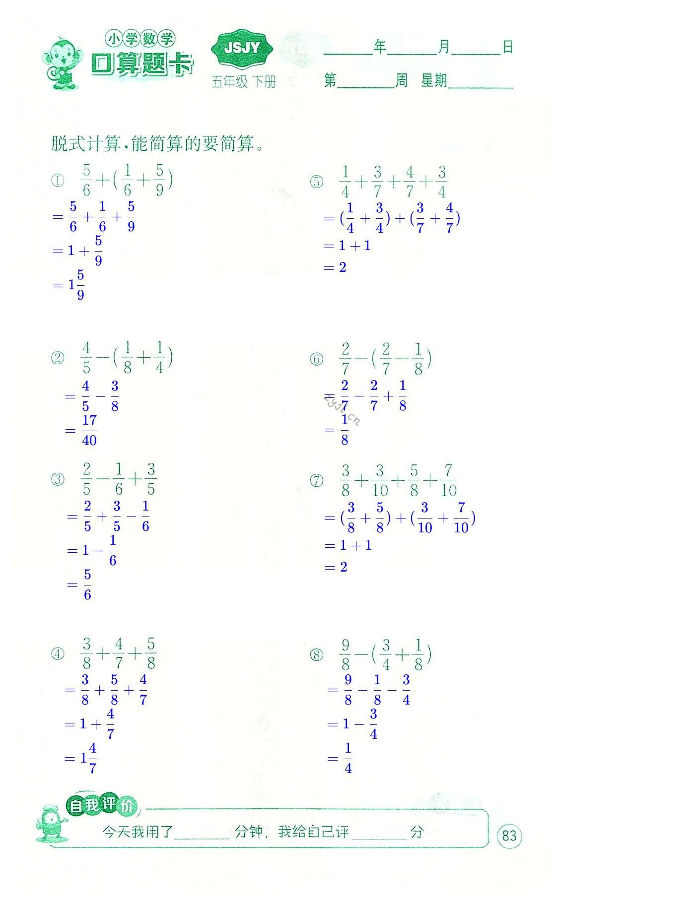 2022年小学数学口算题卡五年级下册苏教版江苏人民出版社