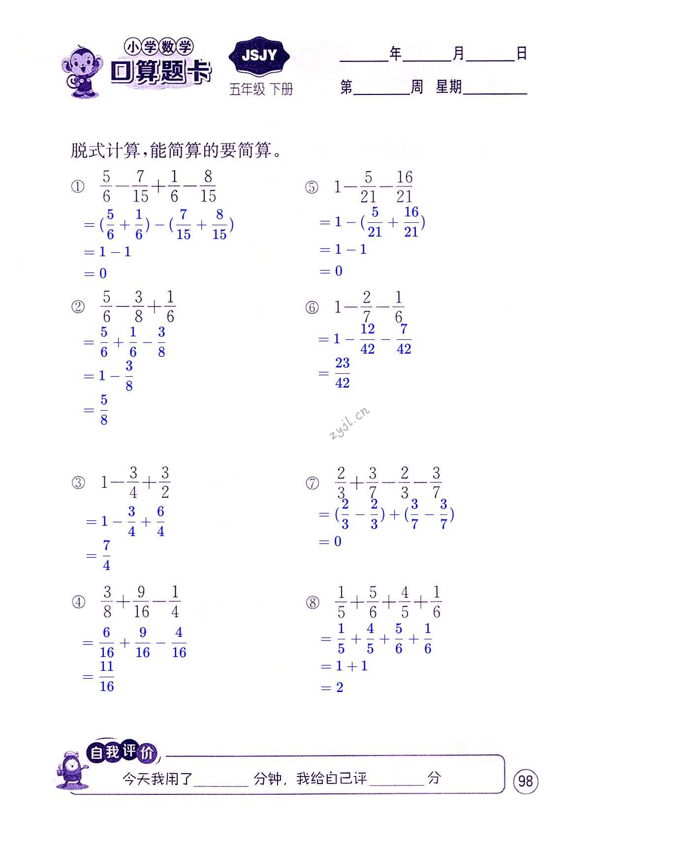 注:目前有些书本章节名称可能整理的还不是很完善,但都是按照顺序排列的,请同学们按照顺序仔细查找。练习册 2022年小学数学口算题卡五年级下册苏教版江苏人民出版社 答案主要是用来给同学们做完题方便对答案用的,请勿直接抄袭。