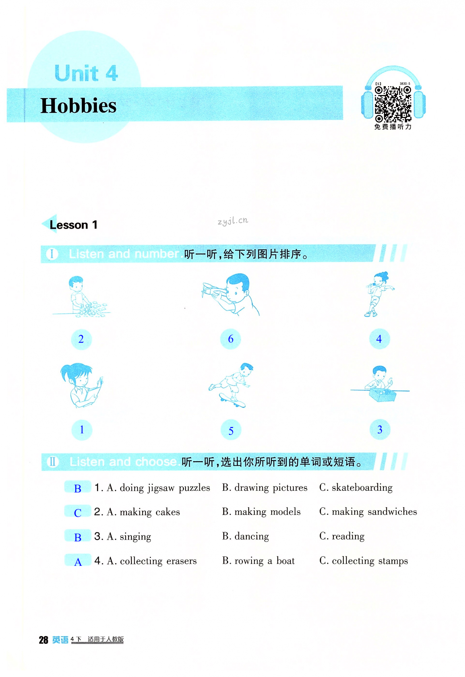 注:目前有些书本章节名称可能整理的还不是很完善,但都是按照顺序排列的,请同学们按照顺序仔细查找。练习册 2022年学习实践园地四年级英语下册人教新起点 答案主要是用来给同学们做完题方便对答案用的,请勿直接抄袭。