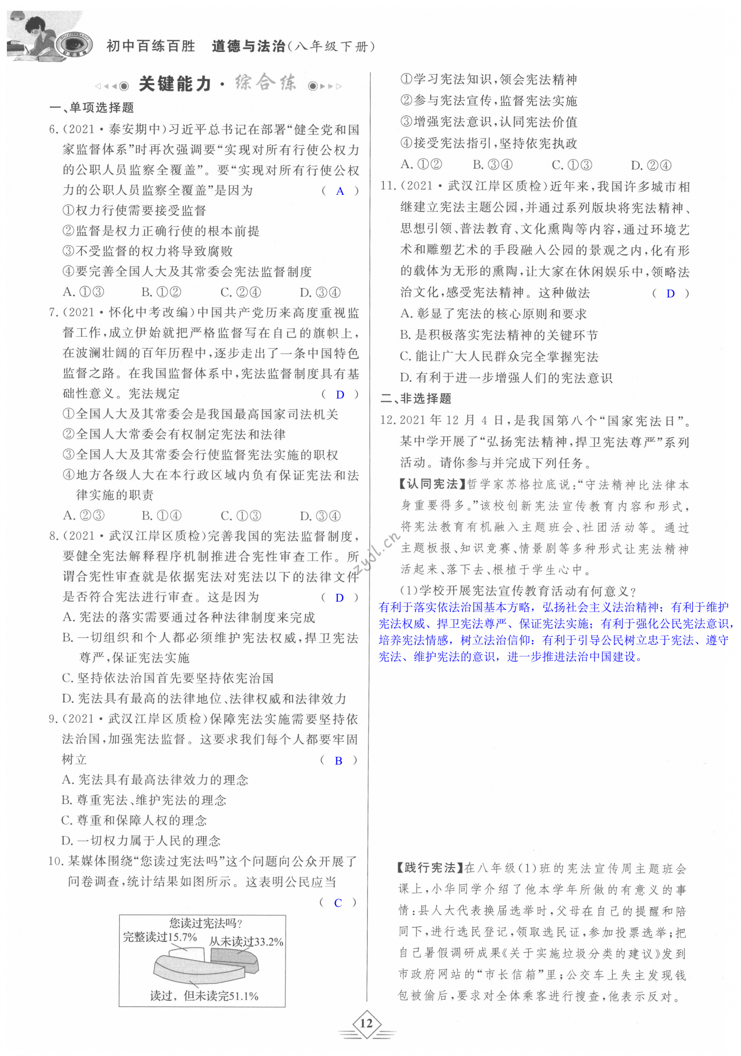 《2022年世纪金榜百练百胜八年级道德与法治下册人教版武汉专版》