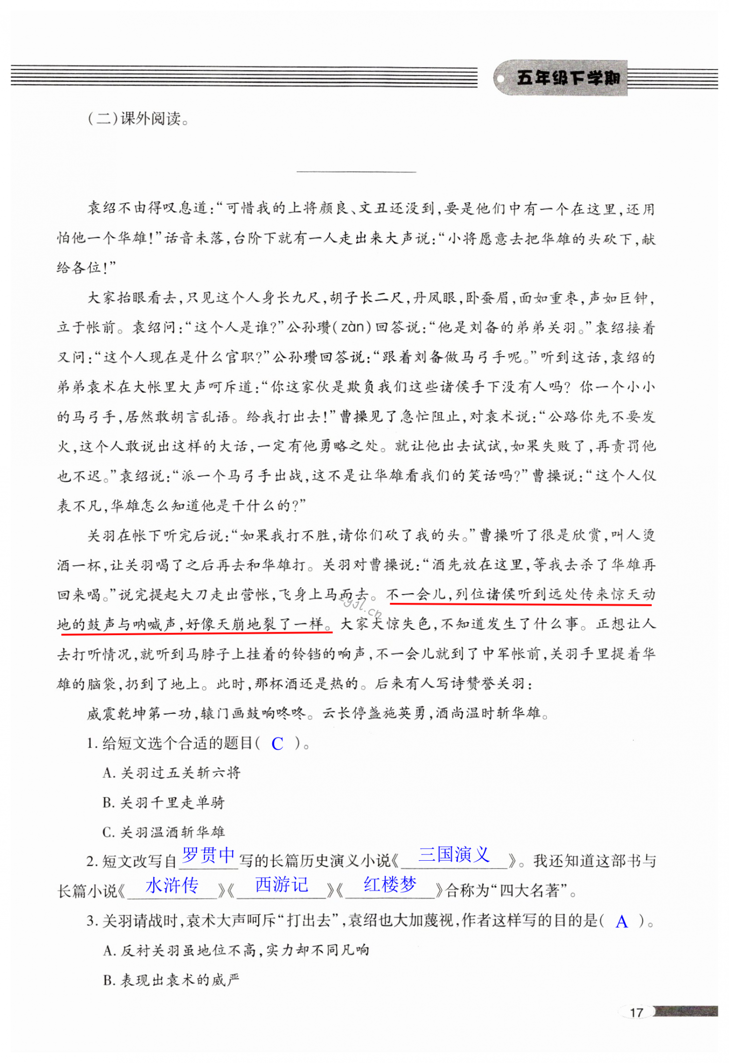 注:目前有些书本章节名称可能整理的还不是很完善,但都是按照顺序排列的,请同学们按照顺序仔细查找。练习册 2022年新课堂同步学习与探究五年级语文下册人教版金乡 答案主要是用来给同学们做完题方便对答案用的,请勿直接抄袭。