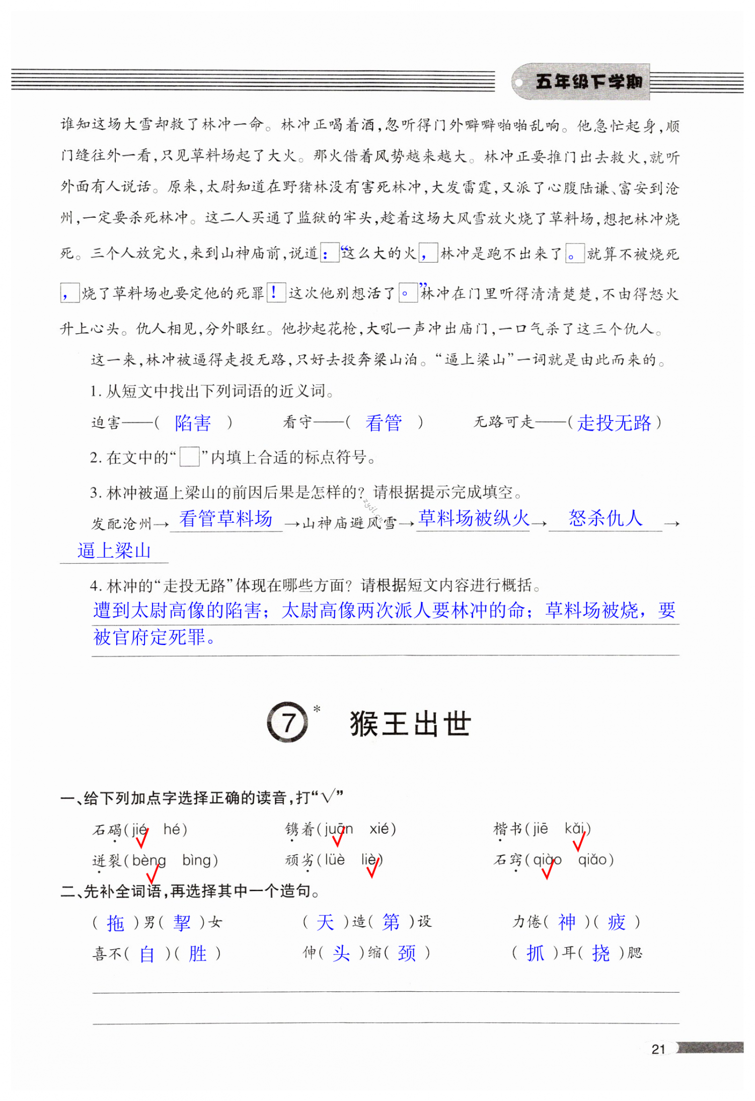 注:目前有些书本章节名称可能整理的还不是很完善,但都是按照顺序排列的,请同学们按照顺序仔细查找。练习册 2022年新课堂同步学习与探究五年级语文下册人教版金乡 答案主要是用来给同学们做完题方便对答案用的,请勿直接抄袭。