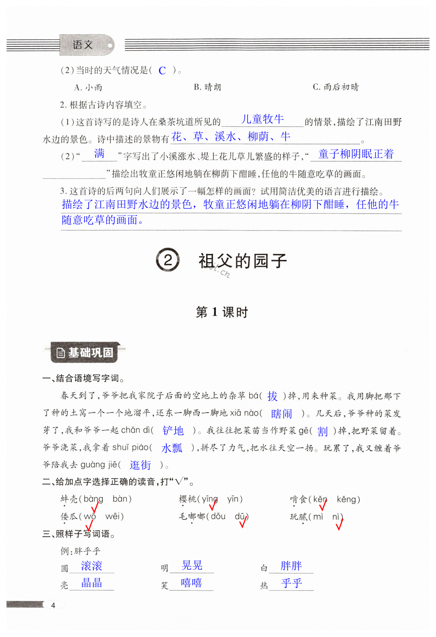 注:目前有些书本章节名称可能整理的还不是很完善,但都是按照顺序排列的,请同学们按照顺序仔细查找。练习册 2022年新课堂同步学习与探究五年级语文下册人教版金乡 答案主要是用来给同学们做完题方便对答案用的,请勿直接抄袭。
