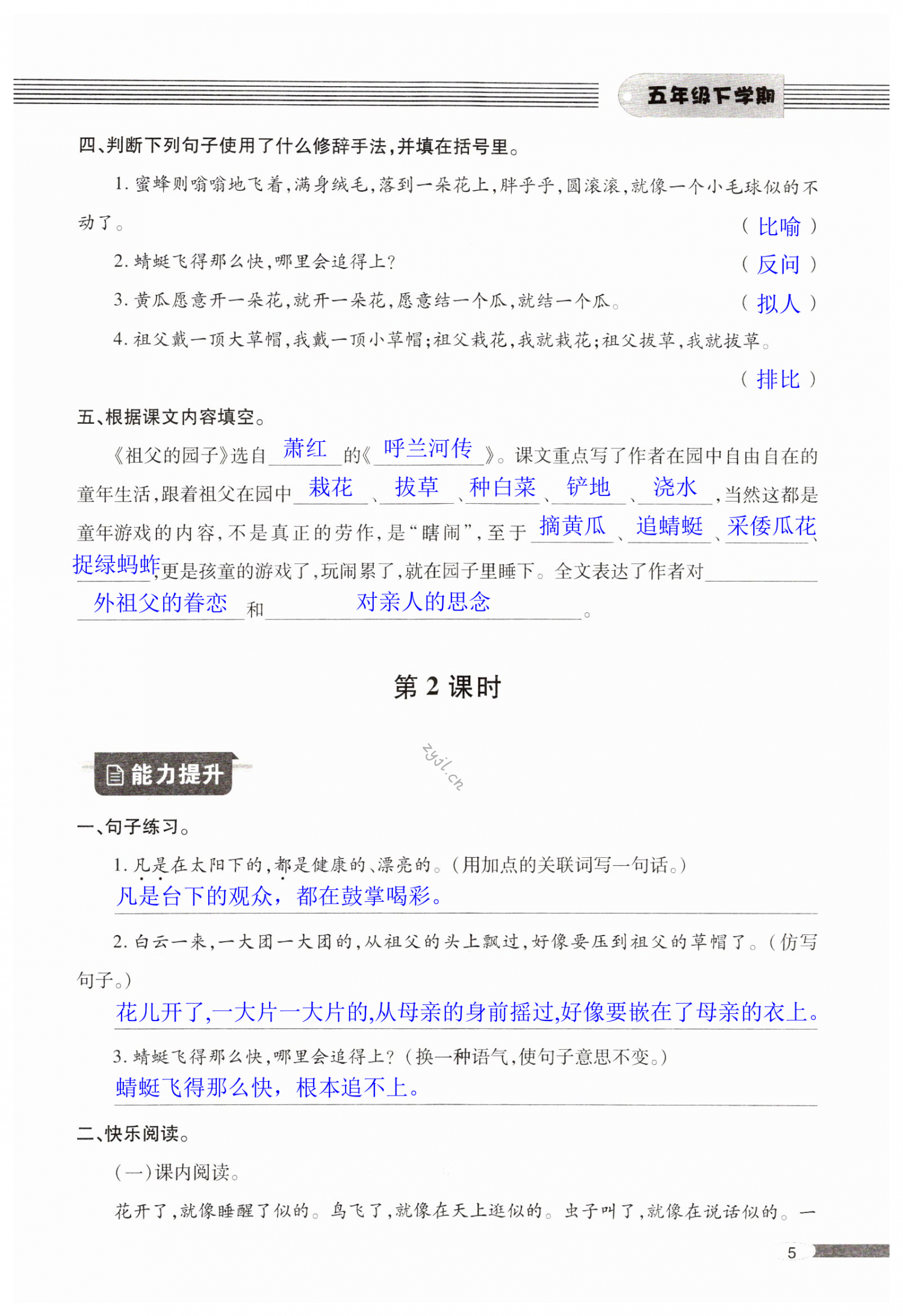 注:目前有些书本章节名称可能整理的还不是很完善,但都是按照顺序排列的,请同学们按照顺序仔细查找。练习册 2022年新课堂同步学习与探究五年级语文下册人教版金乡 答案主要是用来给同学们做完题方便对答案用的,请勿直接抄袭。