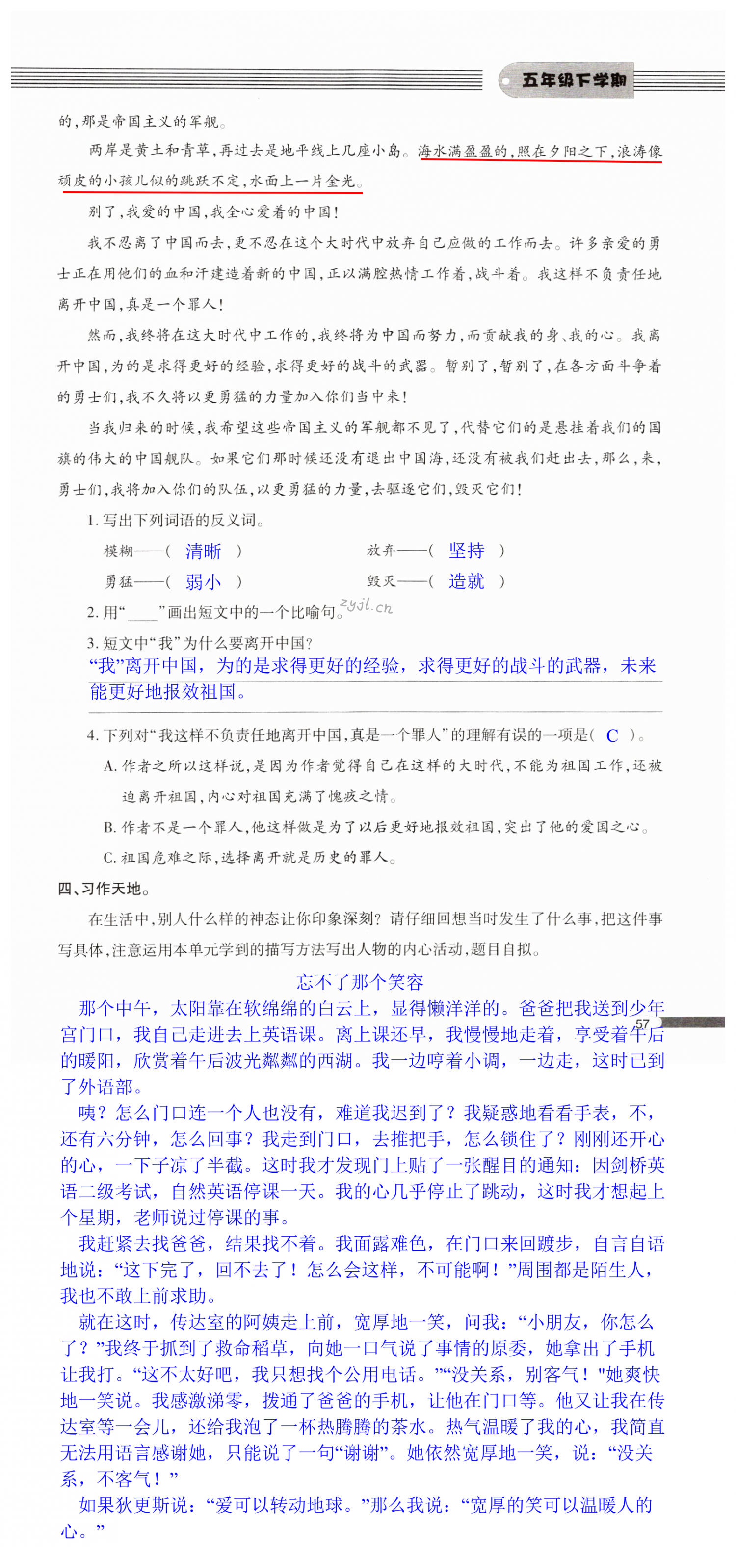 注:目前有些书本章节名称可能整理的还不是很完善,但都是按照顺序排列的,请同学们按照顺序仔细查找。练习册 2022年新课堂同步学习与探究五年级语文下册人教版金乡 答案主要是用来给同学们做完题方便对答案用的,请勿直接抄袭。