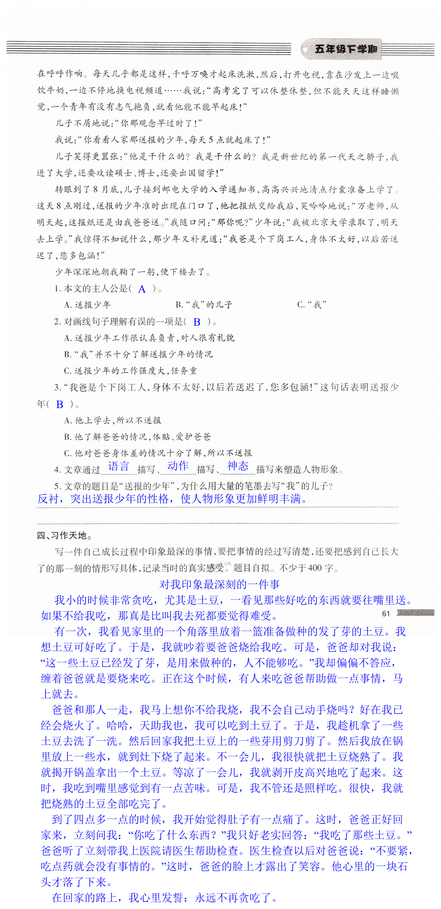 注:目前有些书本章节名称可能整理的还不是很完善,但都是按照顺序排列的,请同学们按照顺序仔细查找。练习册 2022年新课堂同步学习与探究五年级语文下册人教版金乡 答案主要是用来给同学们做完题方便对答案用的,请勿直接抄袭。