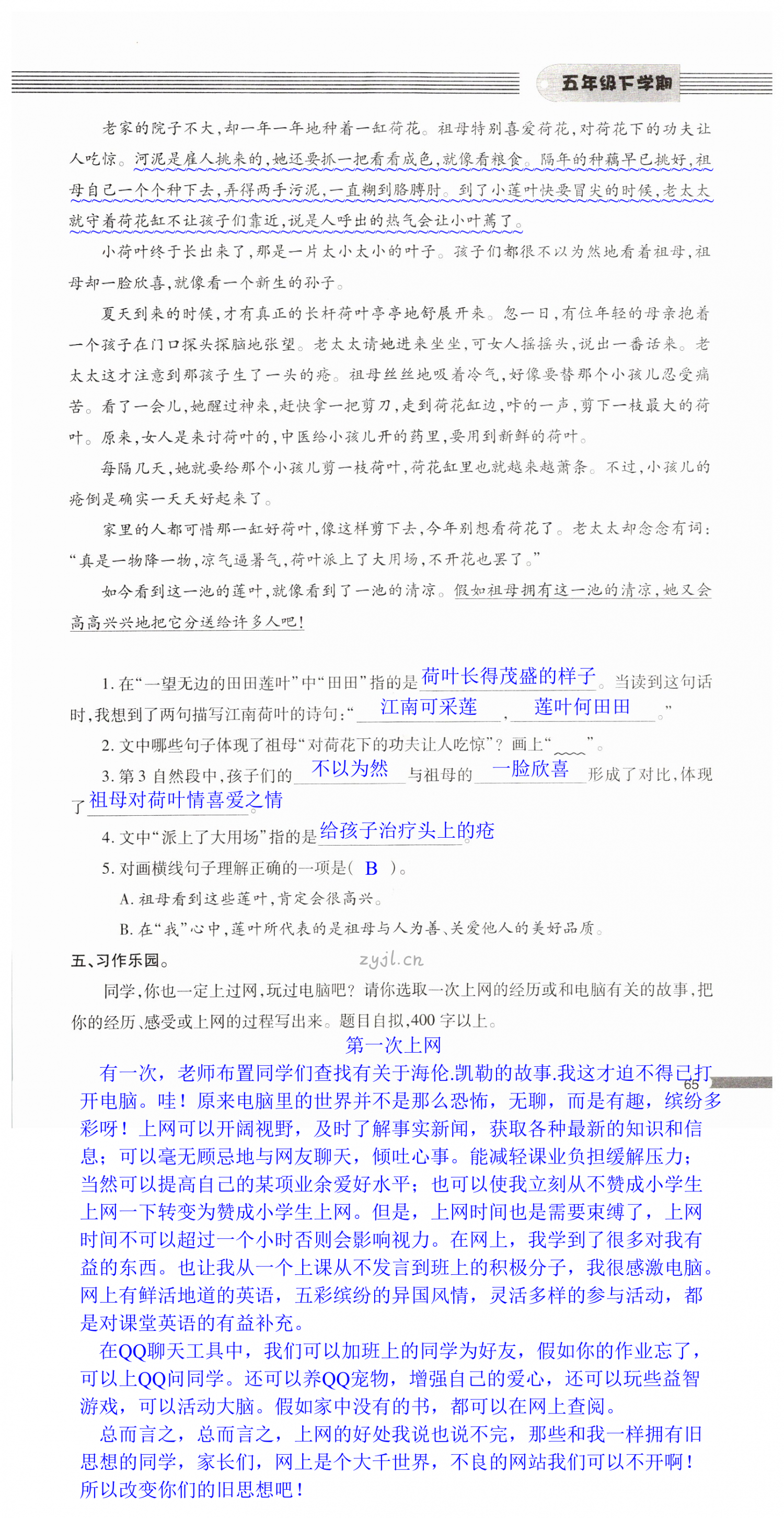 注:目前有些书本章节名称可能整理的还不是很完善,但都是按照顺序排列的,请同学们按照顺序仔细查找。练习册 2022年新课堂同步学习与探究五年级语文下册人教版金乡 答案主要是用来给同学们做完题方便对答案用的,请勿直接抄袭。