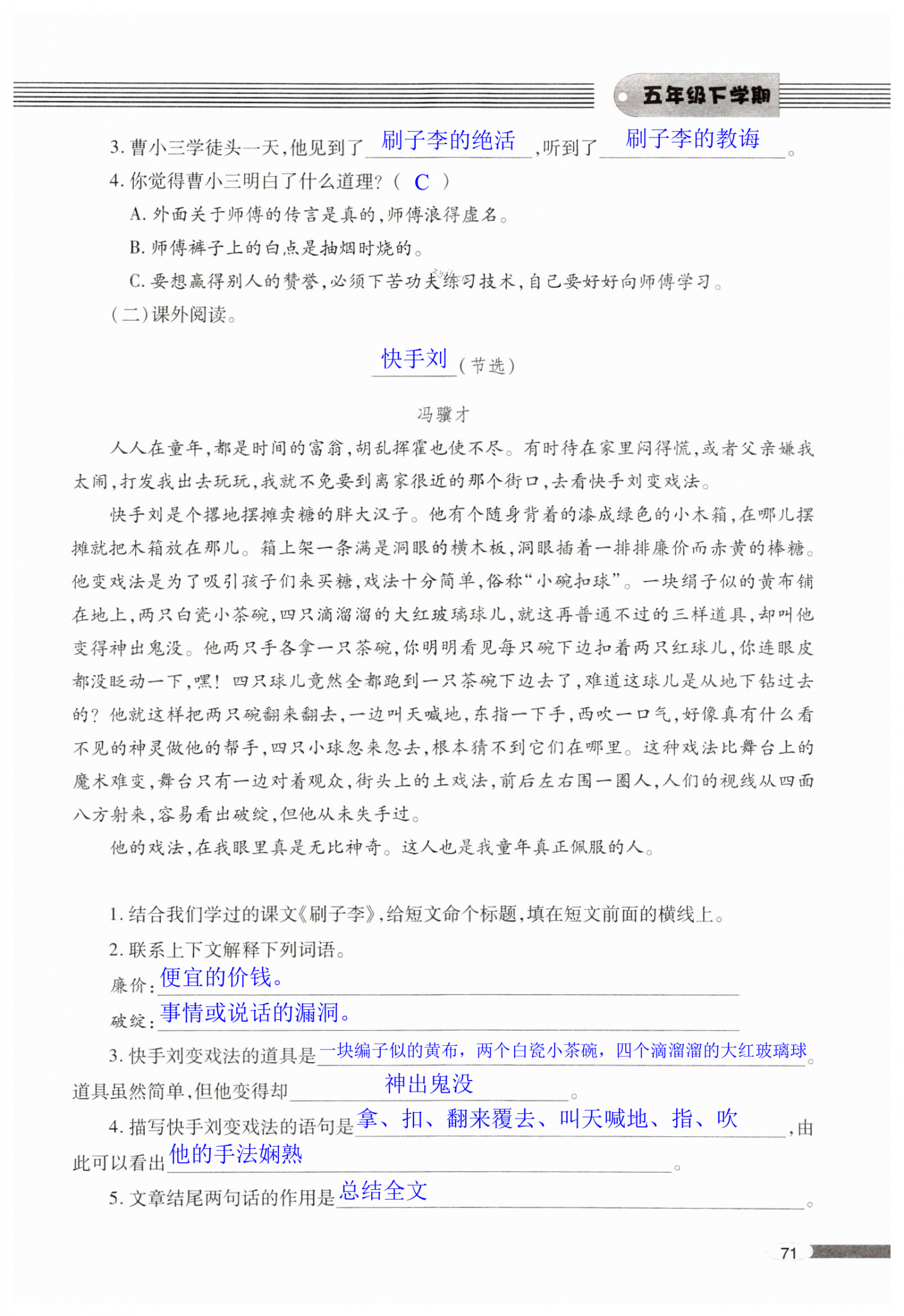 注:目前有些书本章节名称可能整理的还不是很完善,但都是按照顺序排列的,请同学们按照顺序仔细查找。练习册 2022年新课堂同步学习与探究五年级语文下册人教版金乡 答案主要是用来给同学们做完题方便对答案用的,请勿直接抄袭。