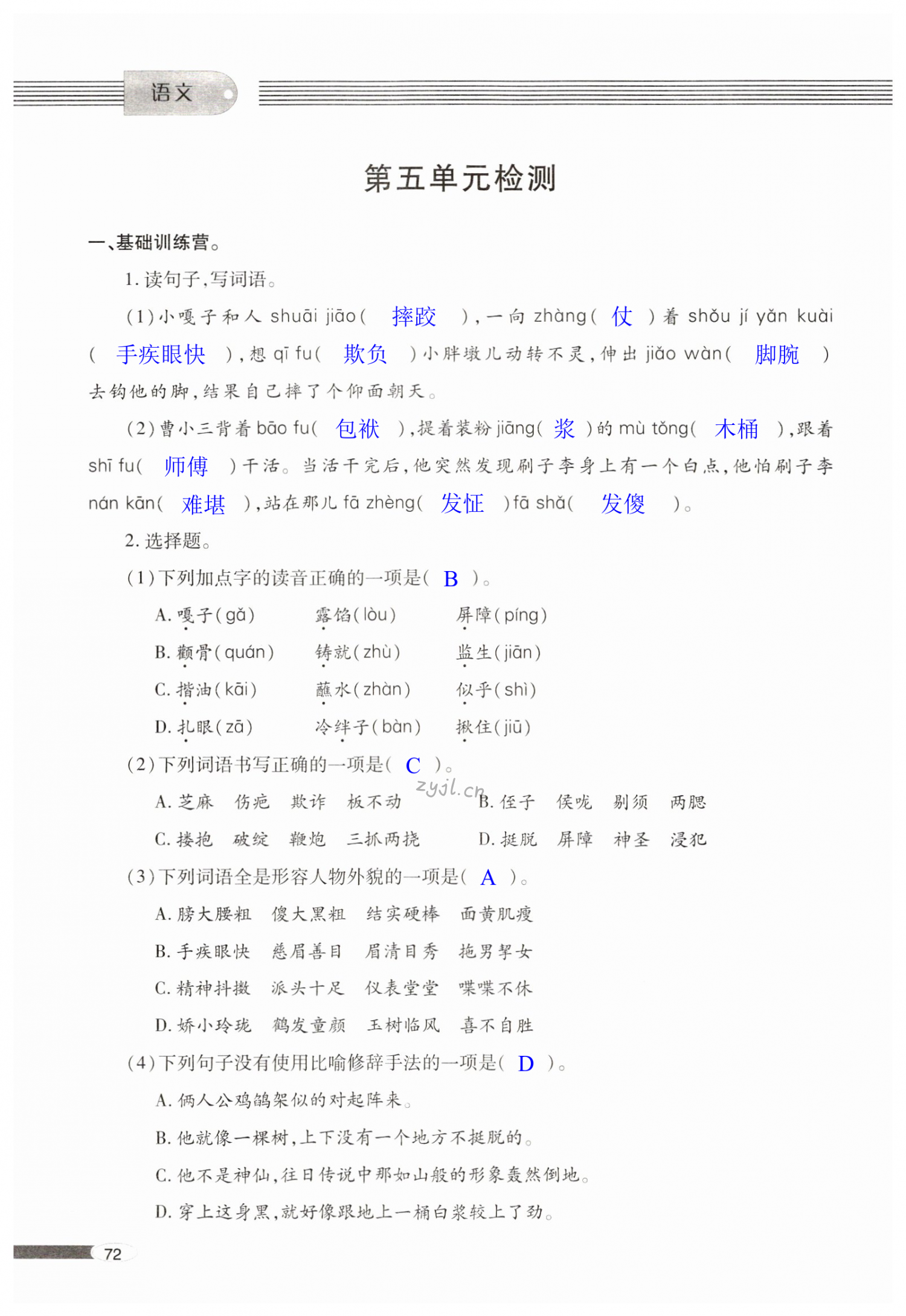注:目前有些书本章节名称可能整理的还不是很完善,但都是按照顺序排列的,请同学们按照顺序仔细查找。练习册 2022年新课堂同步学习与探究五年级语文下册人教版金乡 答案主要是用来给同学们做完题方便对答案用的,请勿直接抄袭。