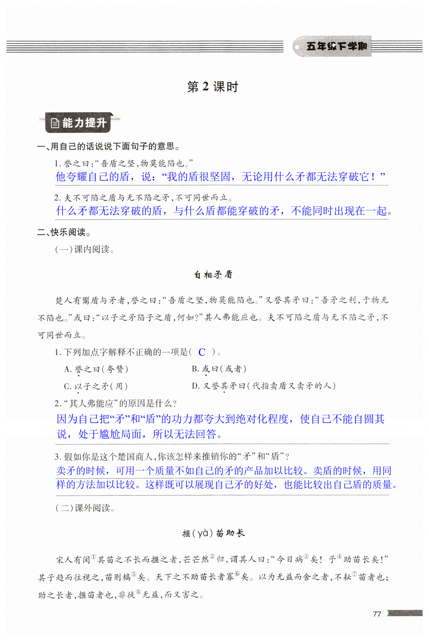 注:目前有些书本章节名称可能整理的还不是很完善,但都是按照顺序排列的,请同学们按照顺序仔细查找。练习册 2022年新课堂同步学习与探究五年级语文下册人教版金乡 答案主要是用来给同学们做完题方便对答案用的,请勿直接抄袭。