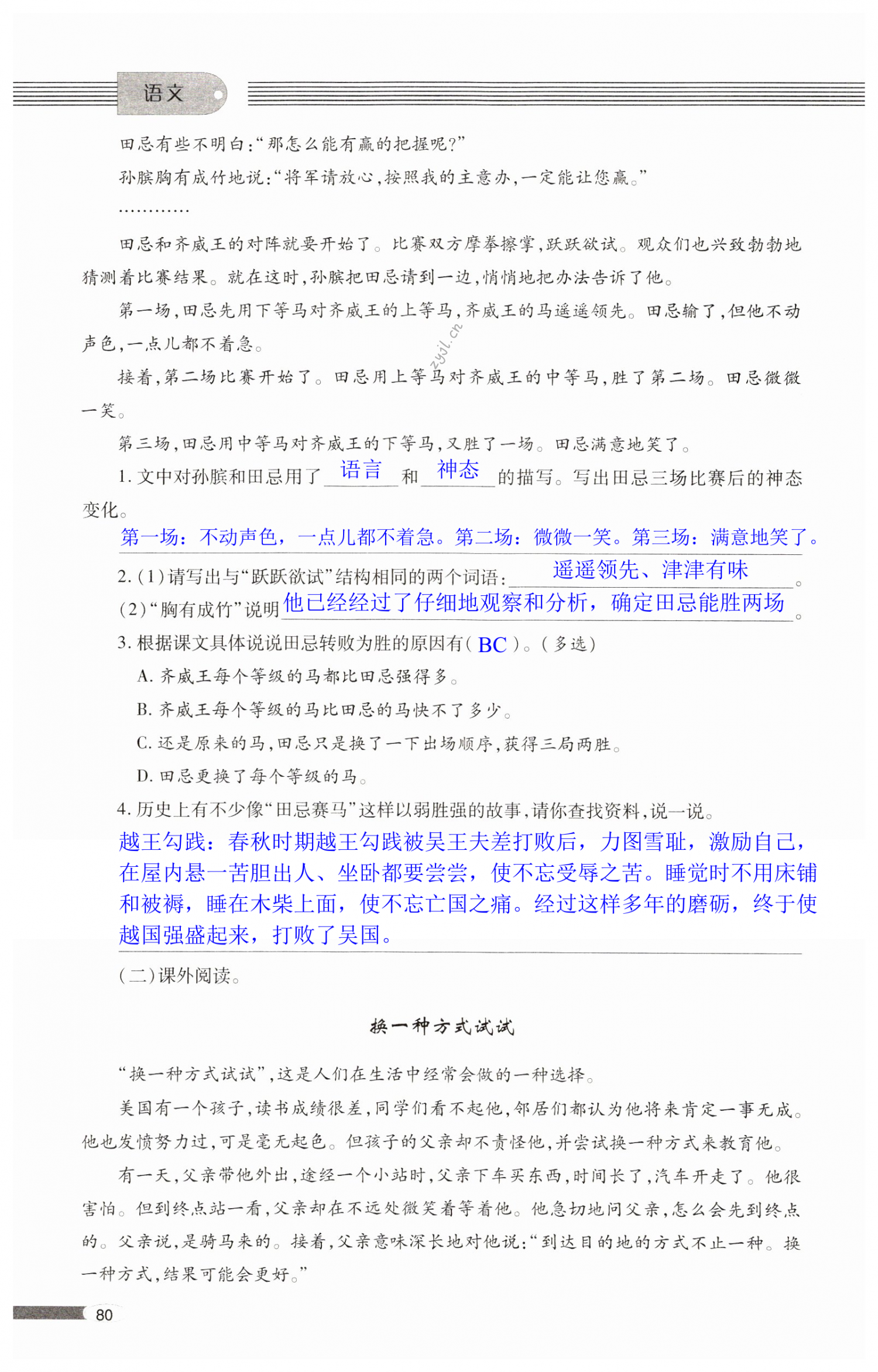 注:目前有些书本章节名称可能整理的还不是很完善,但都是按照顺序排列的,请同学们按照顺序仔细查找。练习册 2022年新课堂同步学习与探究五年级语文下册人教版金乡 答案主要是用来给同学们做完题方便对答案用的,请勿直接抄袭。
