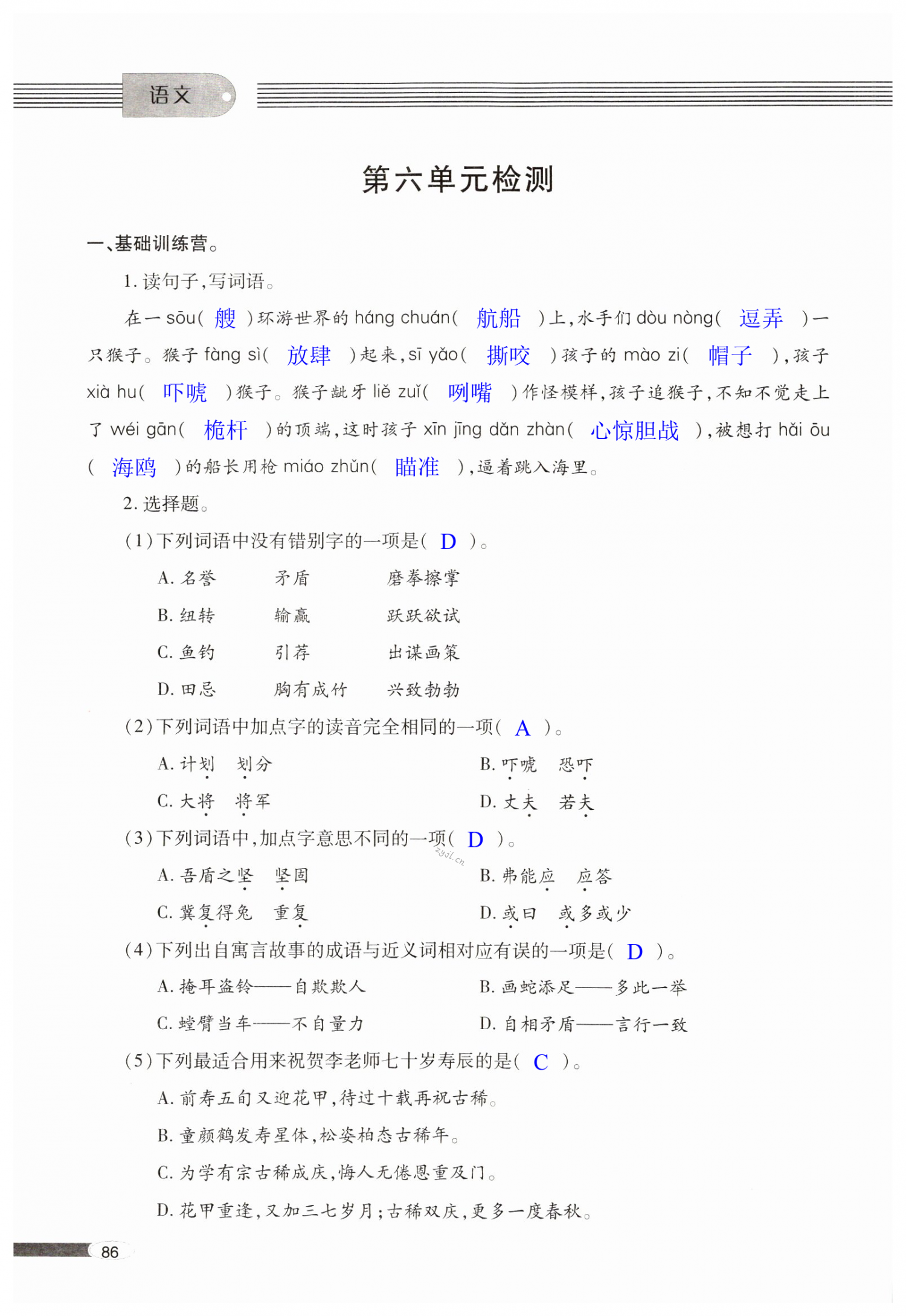 注:目前有些书本章节名称可能整理的还不是很完善,但都是按照顺序排列的,请同学们按照顺序仔细查找。练习册 2022年新课堂同步学习与探究五年级语文下册人教版金乡 答案主要是用来给同学们做完题方便对答案用的,请勿直接抄袭。
