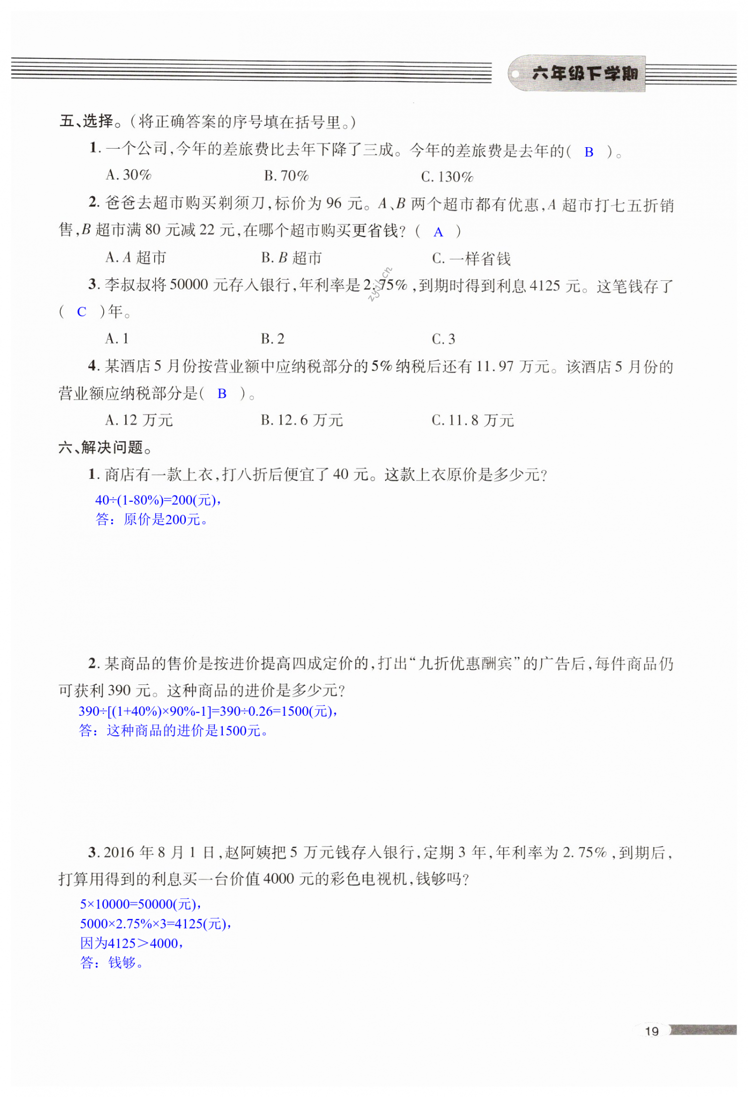 注:目前有些书本章节名称可能整理的还不是很完善,但都是按照顺序排列的,请同学们按照顺序仔细查找。练习册 2022年新课堂同步学习与探究六年级数学下册人教版金乡 答案主要是用来给同学们做完题方便对答案用的,请勿直接抄袭。