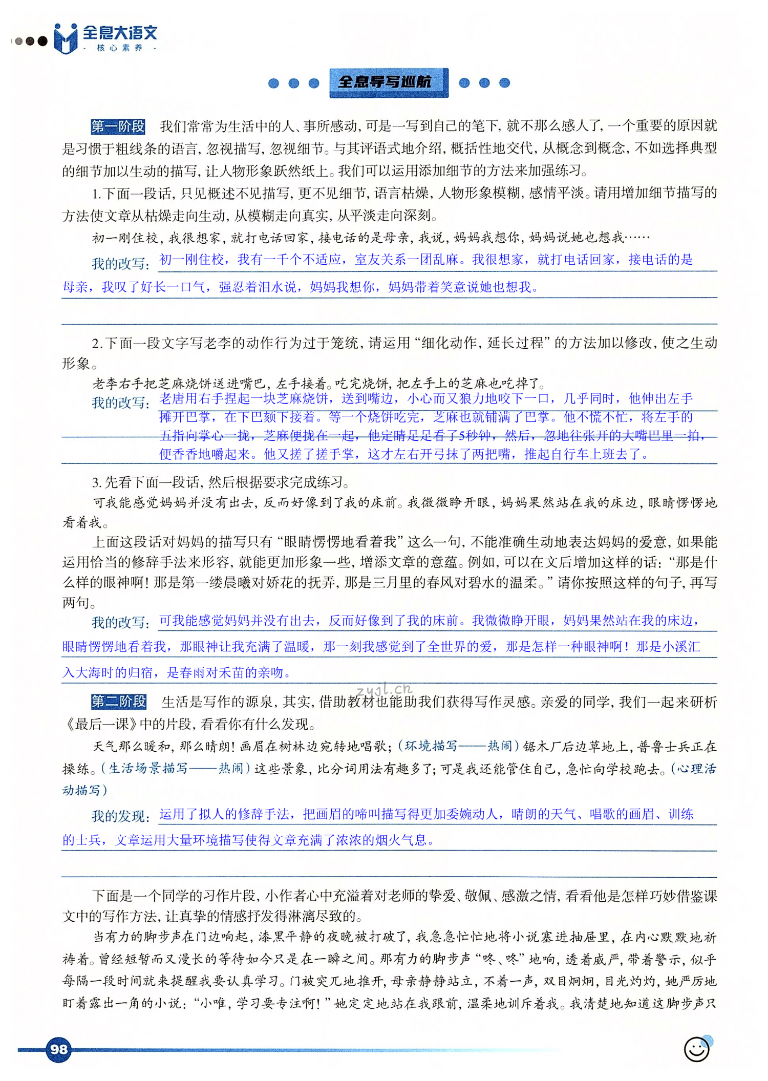 注:目前有些书本章节名称可能整理的还不是很完善,但都是按照顺序排列的,请同学们按照顺序仔细查找。练习册 2022年全息大语文七年级下册人教版 答案主要是用来给同学们做完题方便对答案用的,请勿直接抄袭。