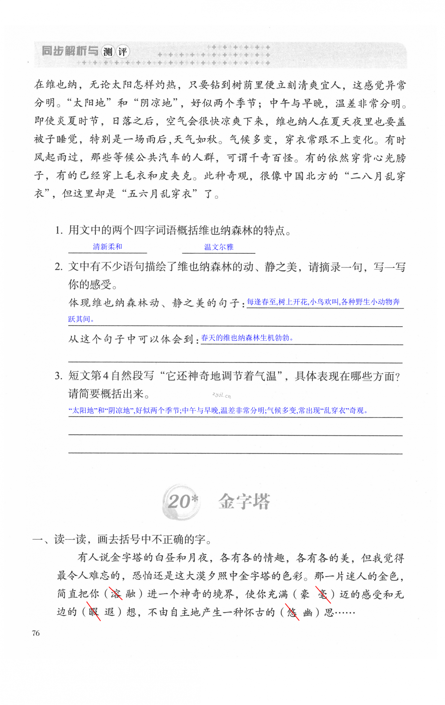 注:目前有些书本章节名称可能整理的还不是很完善,但都是按照顺序排列的,请同学们按照顺序仔细查找。练习册 2022年人教金学典同步解析与测评五年级语文下册人教版山西专版 答案主要是用来给同学们做完题方便对答案用的,请勿直接抄袭。