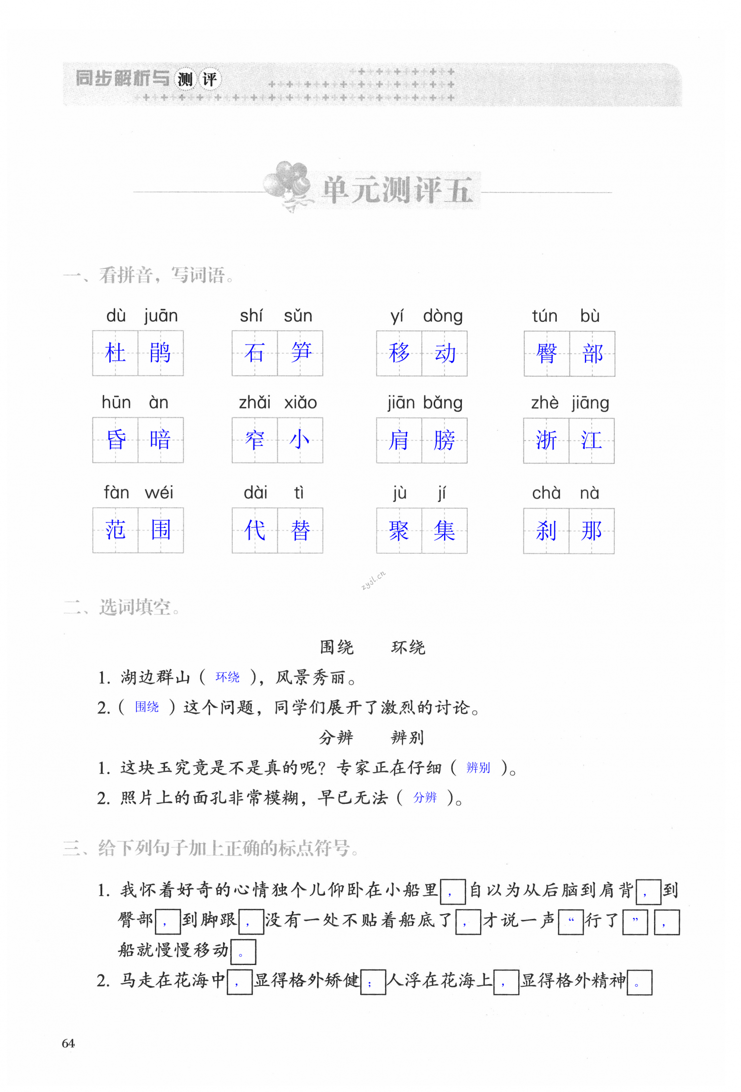 注:目前有些书本章节名称可能整理的还不是很完善,但都是按照顺序排列的,请同学们按照顺序仔细查找。练习册 2022年人教金学典同步解析与测评四年级语文下册人教版山西专版 答案主要是用来给同学们做完题方便对答案用的,请勿直接抄袭。
