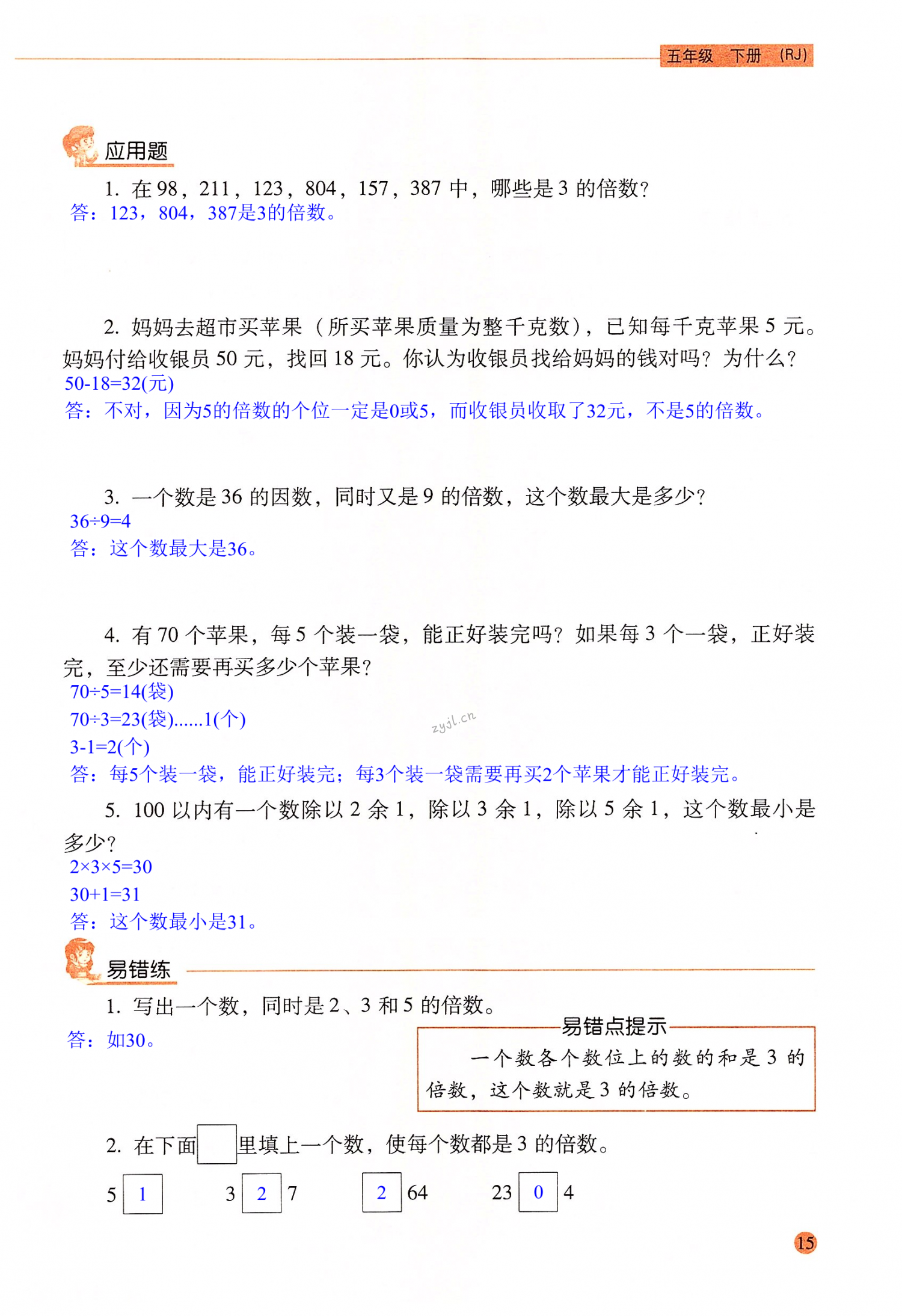 注:目前有些书本章节名称可能整理的还不是很完善,但都是按照顺序排列的,请同学们按照顺序仔细查找。练习册 2022年口算应用题天天练五年级数学下册人教版 答案主要是用来给同学们做完题方便对答案用的,请勿直接抄袭。