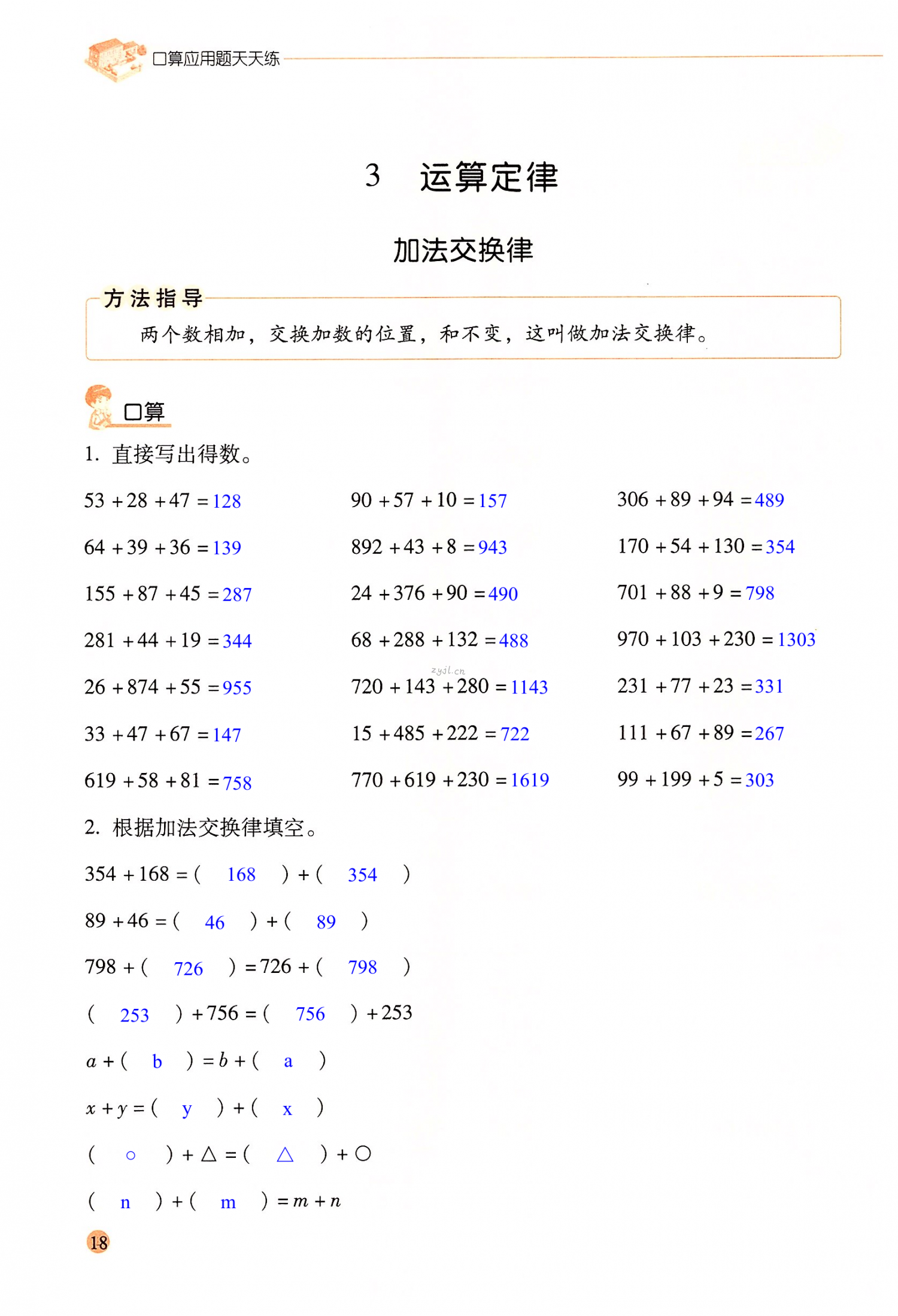 注:目前有些书本章节名称可能整理的还不是很完善,但都是按照顺序排列的,请同学们按照顺序仔细查找。练习册 2022年口算应用题天天练四年级数学下册人教版 答案主要是用来给同学们做完题方便对答案用的,请勿直接抄袭。