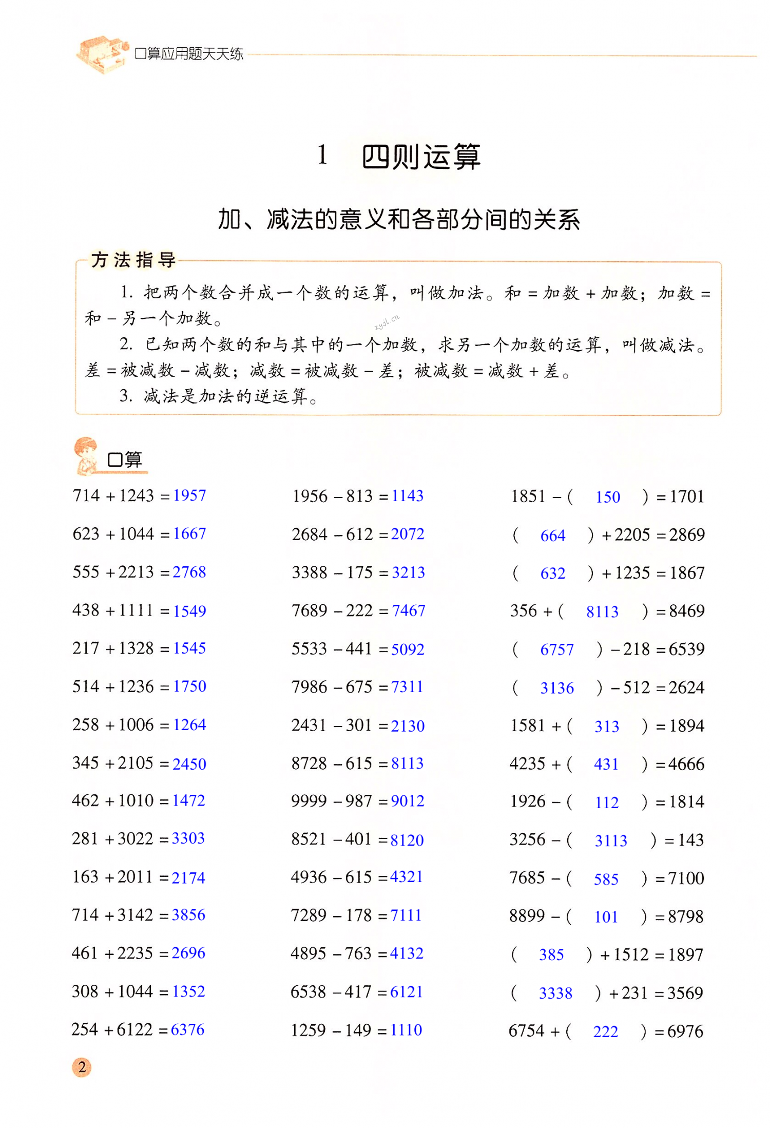 注:目前有些书本章节名称可能整理的还不是很完善,但都是按照顺序排列的,请同学们按照顺序仔细查找。练习册 2022年口算应用题天天练四年级数学下册人教版 答案主要是用来给同学们做完题方便对答案用的,请勿直接抄袭。