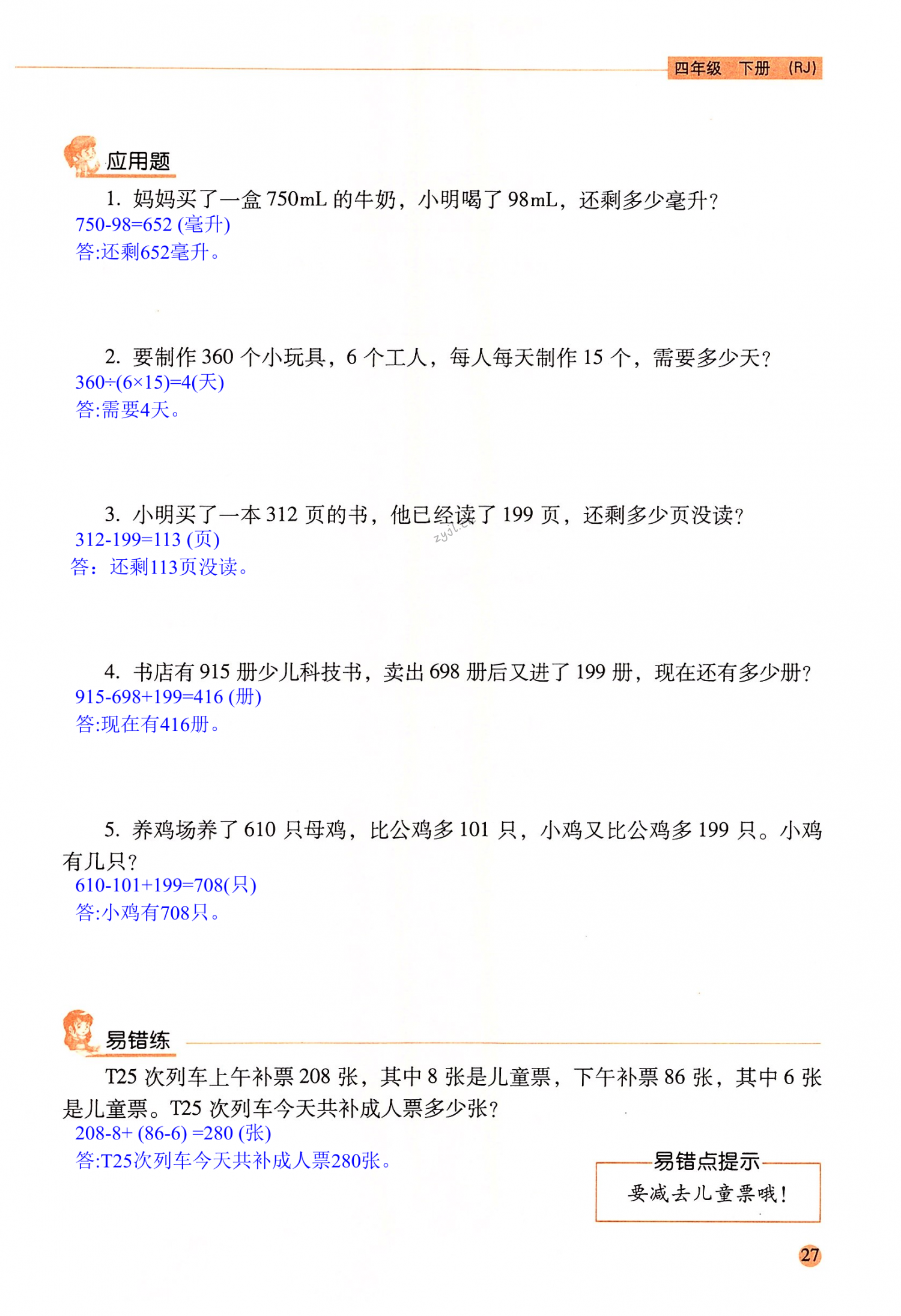 注:目前有些书本章节名称可能整理的还不是很完善,但都是按照顺序排列的,请同学们按照顺序仔细查找。练习册 2022年口算应用题天天练四年级数学下册人教版 答案主要是用来给同学们做完题方便对答案用的,请勿直接抄袭。