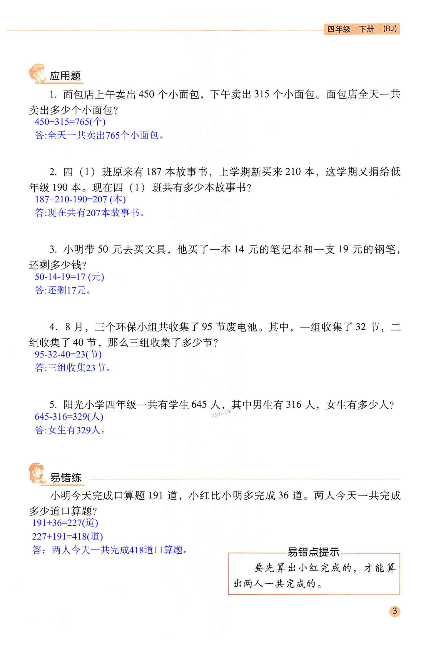 注:目前有些书本章节名称可能整理的还不是很完善,但都是按照顺序排列的,请同学们按照顺序仔细查找。练习册 2022年口算应用题天天练四年级数学下册人教版 答案主要是用来给同学们做完题方便对答案用的,请勿直接抄袭。