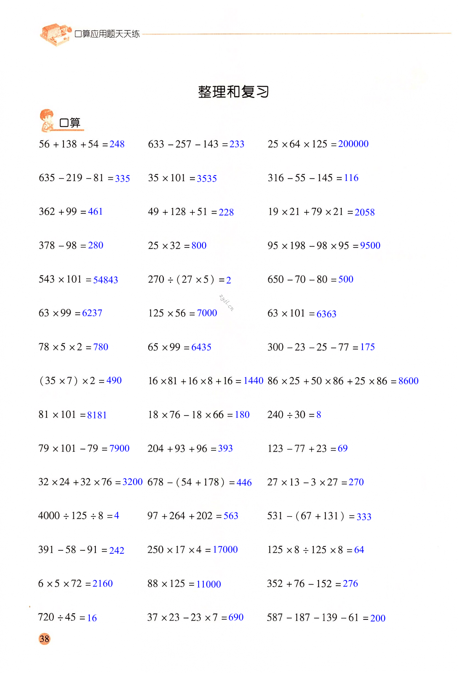 注:目前有些书本章节名称可能整理的还不是很完善,但都是按照顺序排列的,请同学们按照顺序仔细查找。练习册 2022年口算应用题天天练四年级数学下册人教版 答案主要是用来给同学们做完题方便对答案用的,请勿直接抄袭。