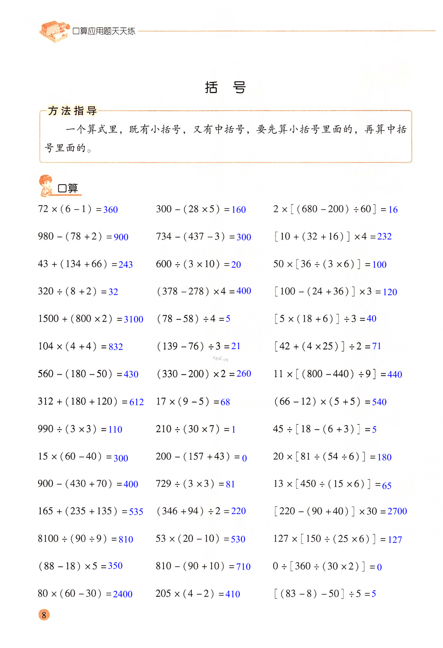 注:目前有些书本章节名称可能整理的还不是很完善,但都是按照顺序排列的,请同学们按照顺序仔细查找。练习册 2022年口算应用题天天练四年级数学下册人教版 答案主要是用来给同学们做完题方便对答案用的,请勿直接抄袭。