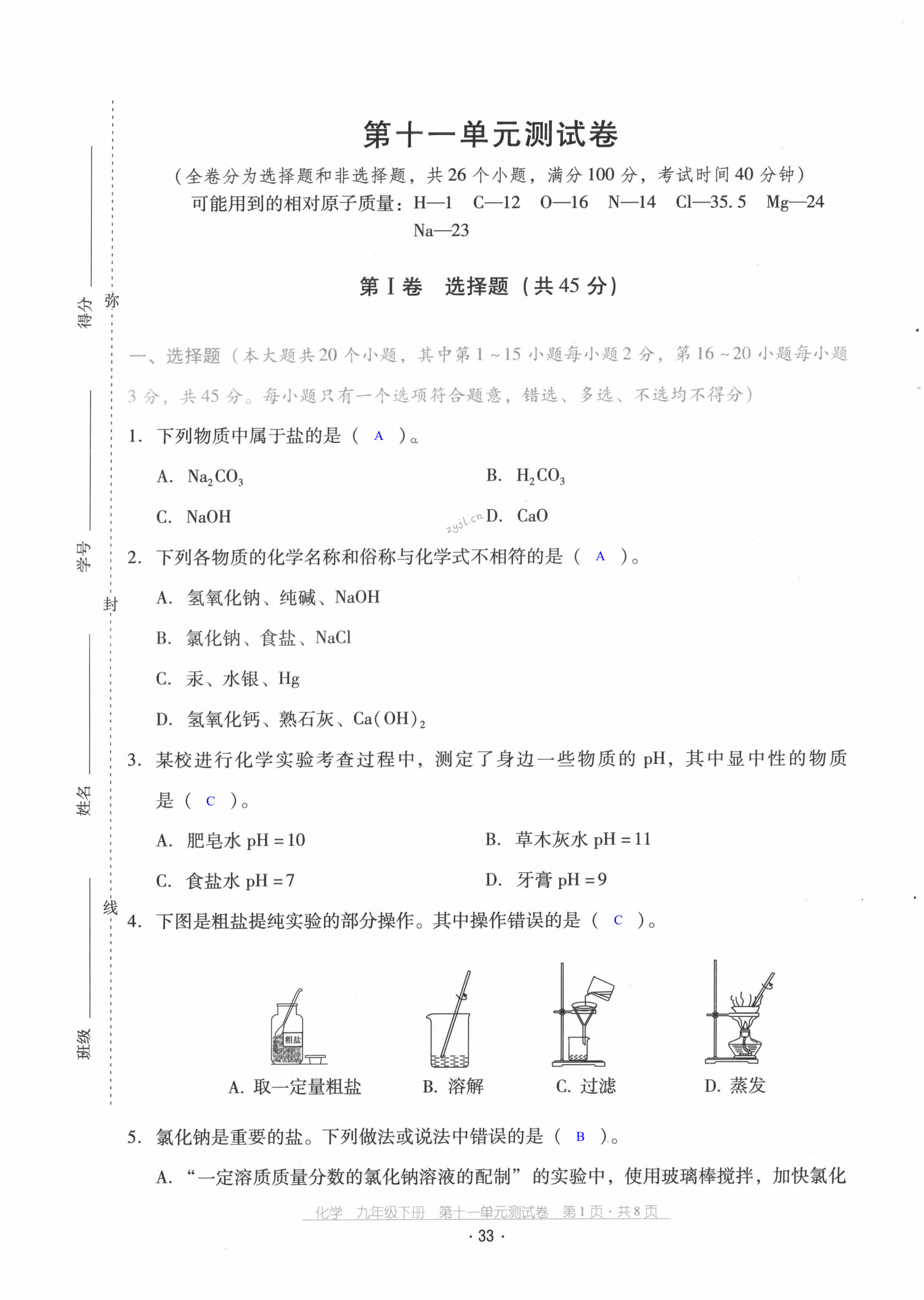 注:目前有些书本章节名称可能整理的还不是很完善,但都是按照顺序排列的,请同学们按照顺序仔细查找。练习册 2022年云南省标准教辅优佳学案配套测试卷九年级化学下册人教版 答案主要是用来给同学们做完题方便对答案用的,请勿直接抄袭。