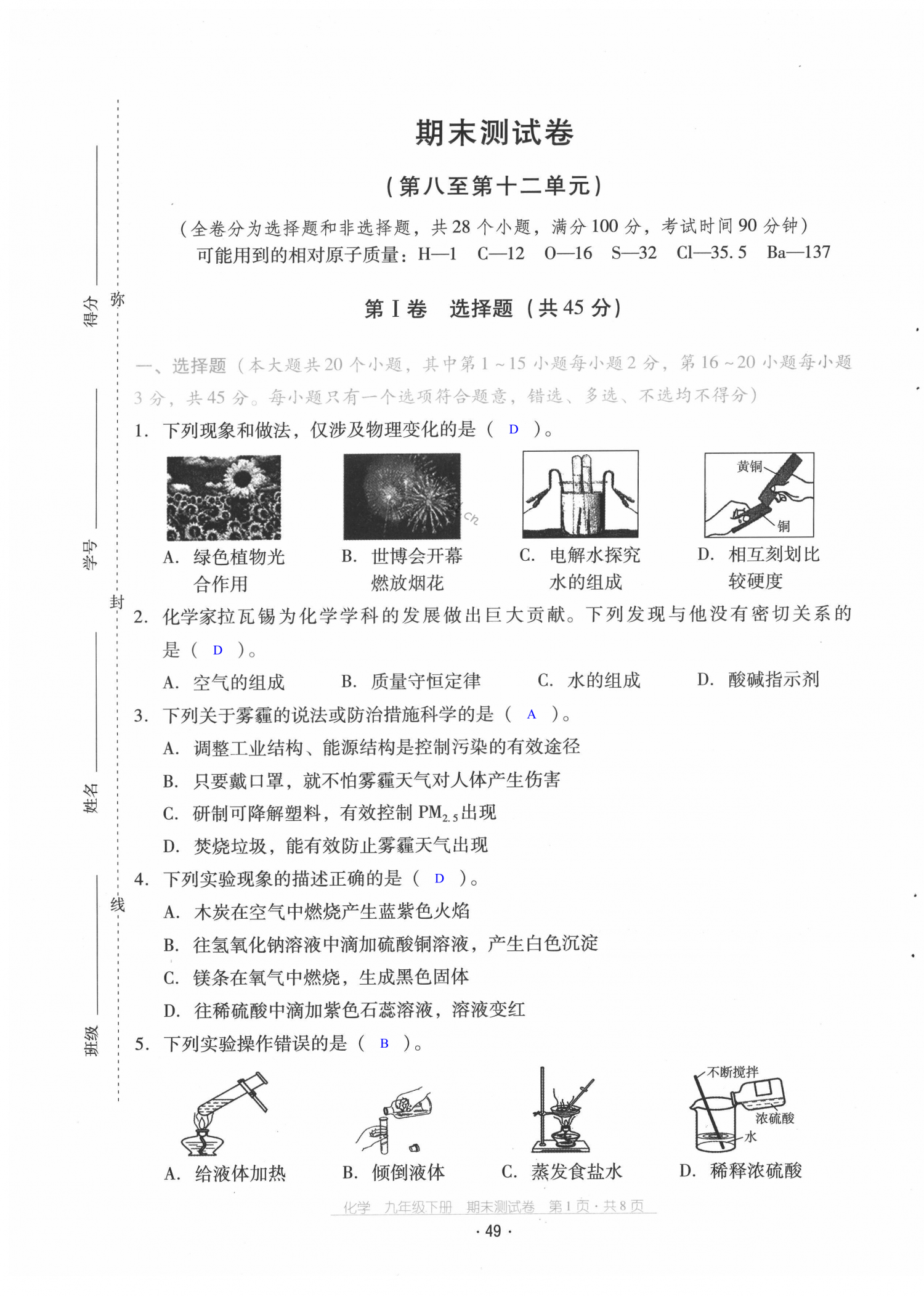 2022年云南省标准教辅优佳学案配套测试卷九年级化学下册人教版